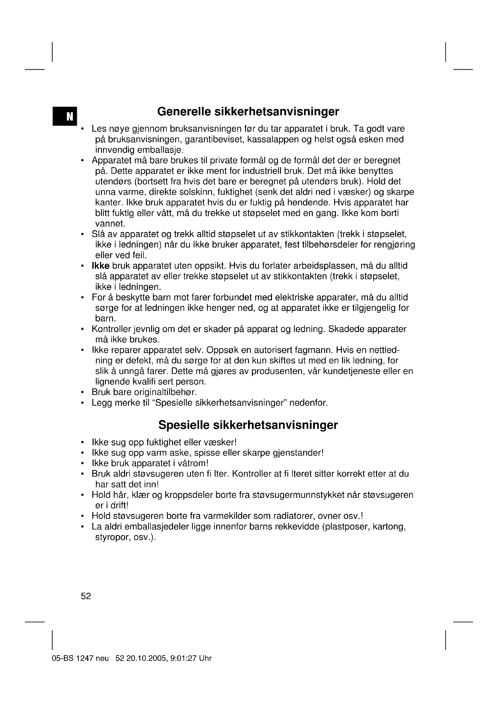 du rengjøre fi lteret i varmt vann, uten tilsetninger. Vent til det er helt tørt før du setter det inn igjen! 05-BS 1247 neu 56 20.10.2005, 9:01:28 UhrN
