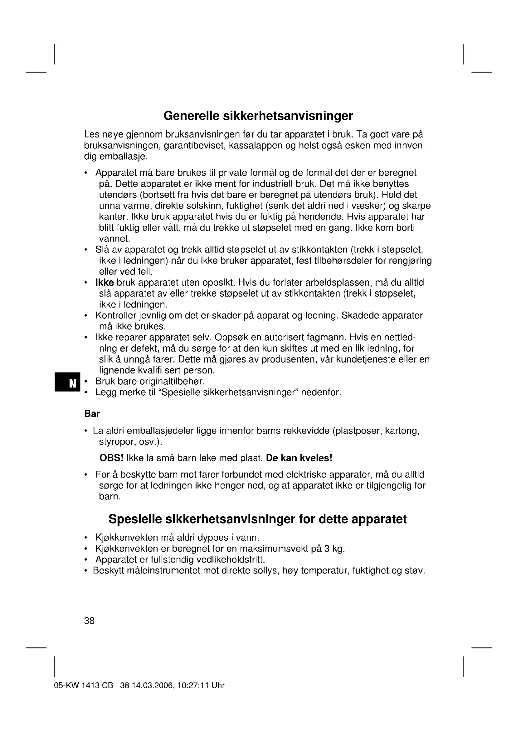 - Beskytt måleinstrumentet mot direkte sollys, høy temperatur, fuktighet og støv. 05-KW 1413 CB 38 14.03.2006, 10:27:11 UhrN