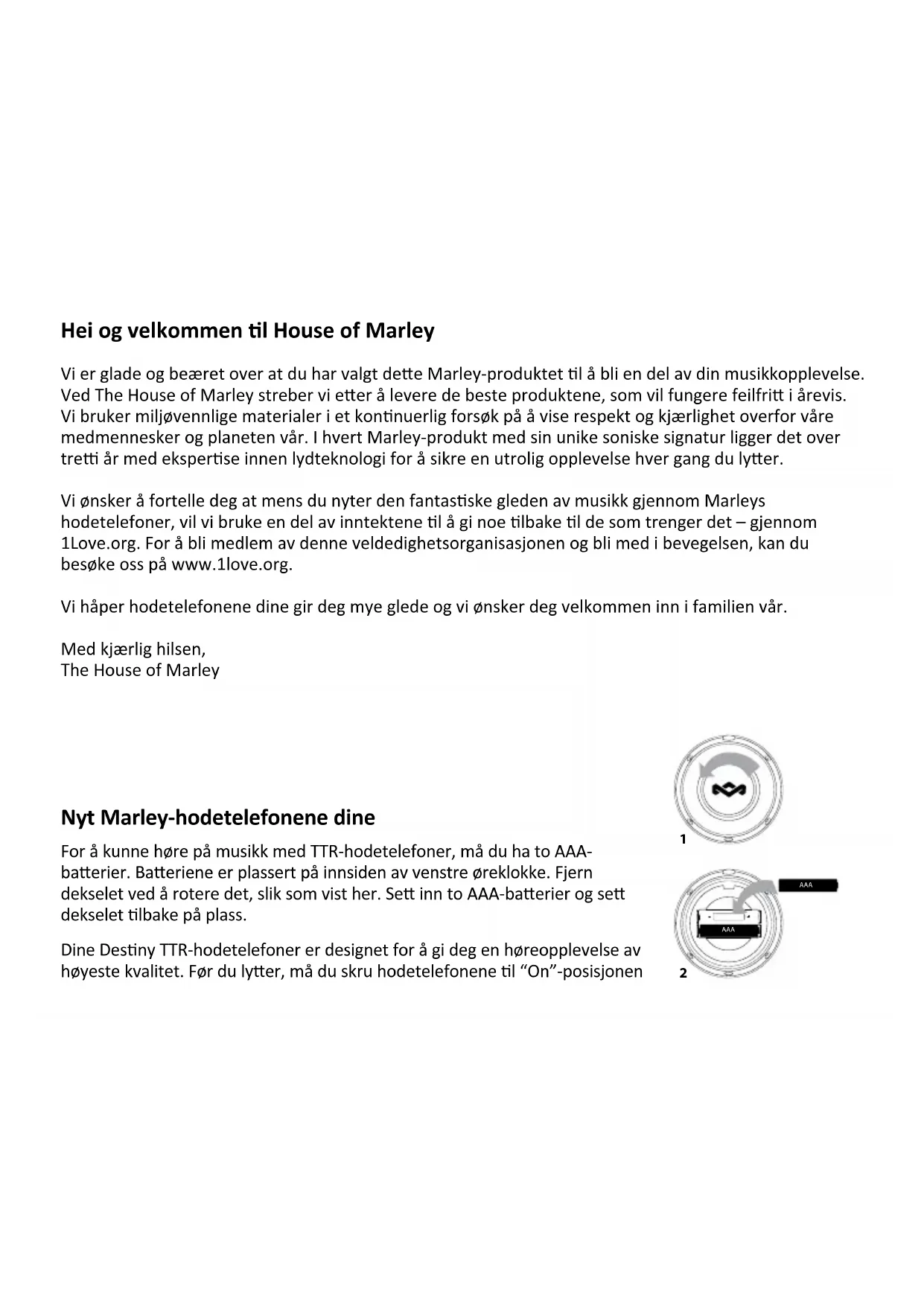 Last ned instruksjonene for din øretelefon i PDF-format gratis! Finn veiledningen din TTR EMDH001 - HOUSE OF MARLEY og ta den elektroniske enheten tilbake i hendene. På denne siden er alle dokumenter som er nødvendige for bruken av enheten din publisert. TTR EMDH001 av merket HOUSE OF MARLEY.