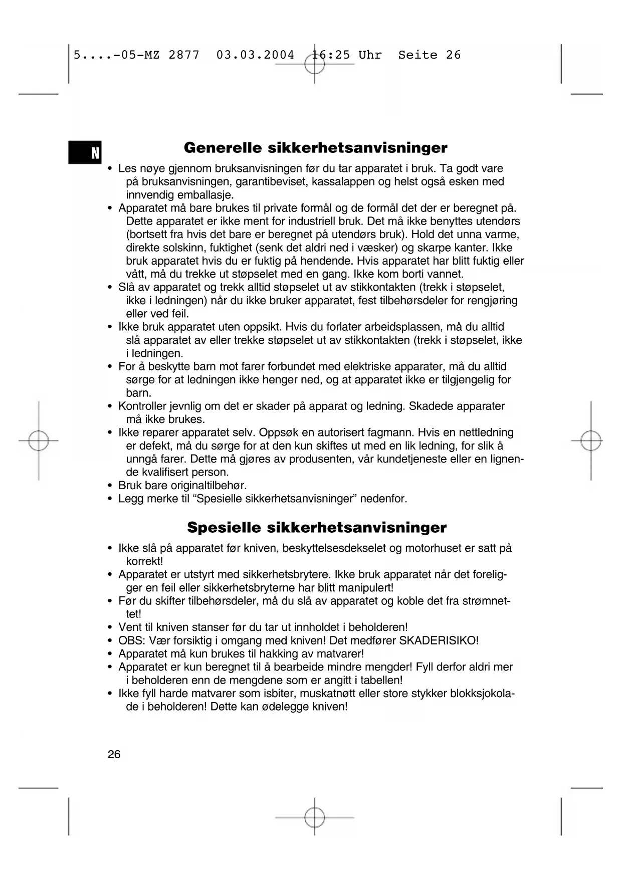 5....-05-MZ 2877 03.03.2004 16:25 Uhr Seite 28Verken defekter på forbrukstilbehør og slitasjedeler (for eksempel motorkull, elte- kroker, drivremmer, ekstra fjernbetjening, ekstra tannbørster, sagblader osv.) eller rengjøring, vedlikehold og utskifting av slitasjedeler går inn under garantien. Slike ting er derfor kostnadspliktige! Garantien utgår ved inngrep utenfra. Etter garantien Etter at garantitiden har gått ut, kan reparasjoner utføres av den aktuelle faghande- len eller reparasjonsservice mot betaling.