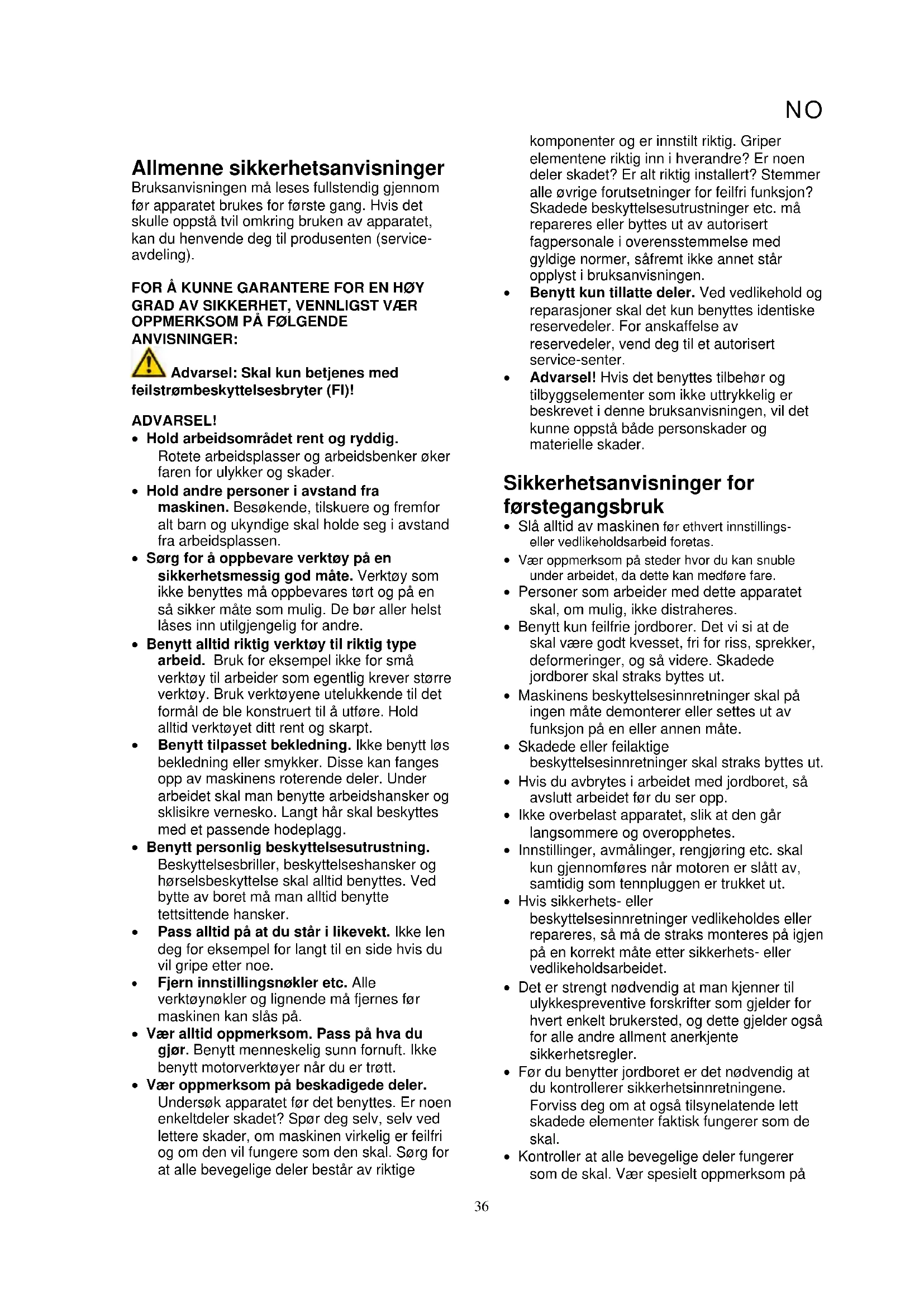 - Maskinens beskyttelsesinnretninger skal på ingen måte demonterer eller settes ut av funksjon på en eller annen måte.
