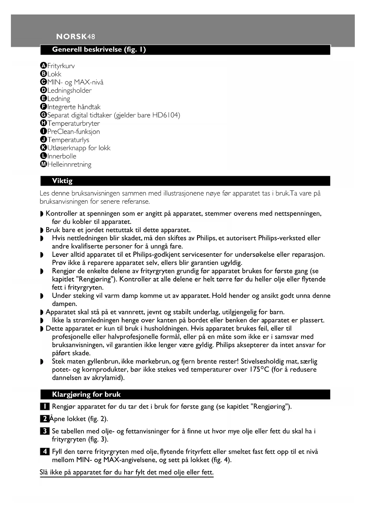 Last ned instruksjonene for din Frityrkoker i PDF-format gratis! Finn veiledningen din Daily Collection HD6104 - PHILIPS og ta den elektroniske enheten tilbake i hendene. På denne siden er alle dokumenter som er nødvendige for bruken av enheten din publisert. Daily Collection HD6104 av merket PHILIPS.