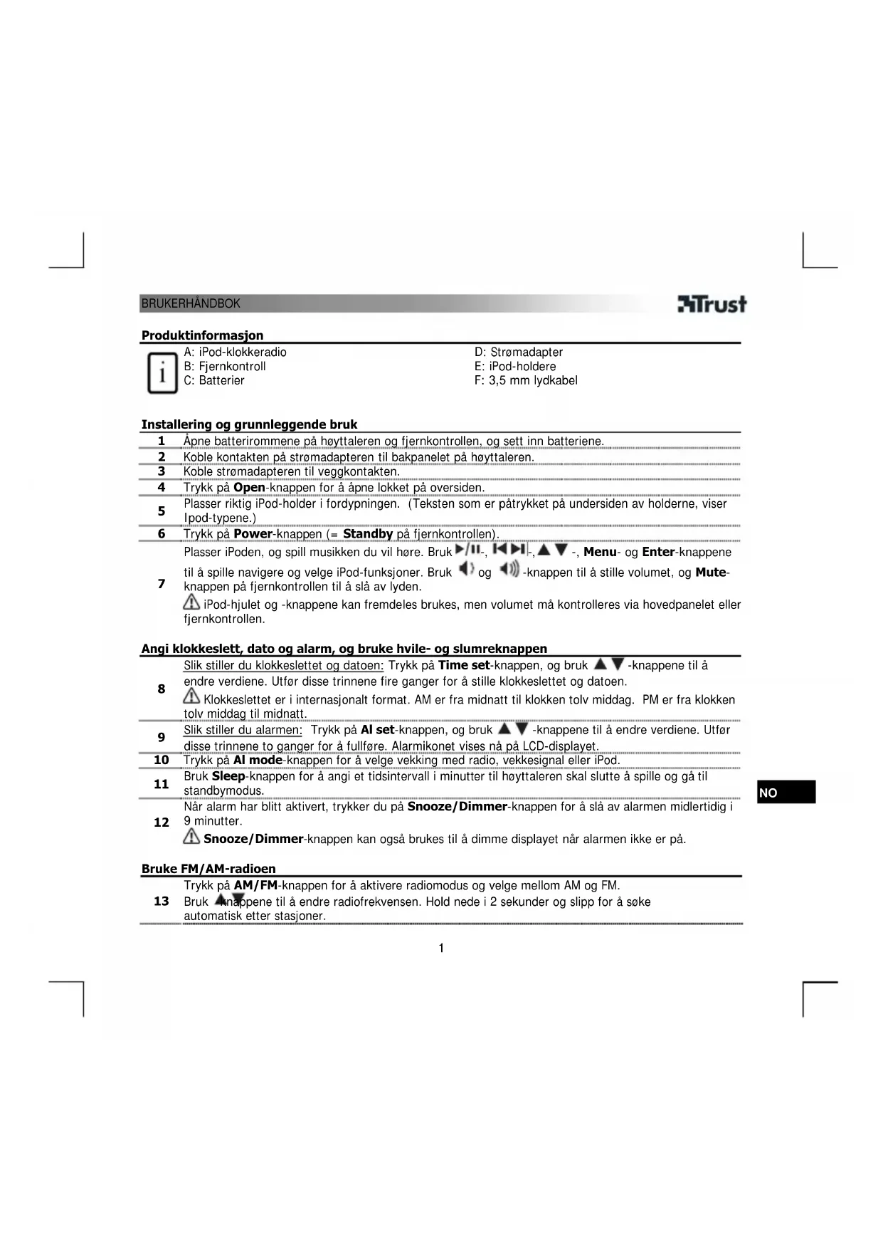 - Ikke bruk enheten i fuktige omgivelser. Rengjør enheten med en tørr klut. Se www.trust.com/15129 for å finne oppdaterte svar på spørsmål og instruksjonshåndbøker. For mer omfattende service, registrer deg på www.trust.com/register.