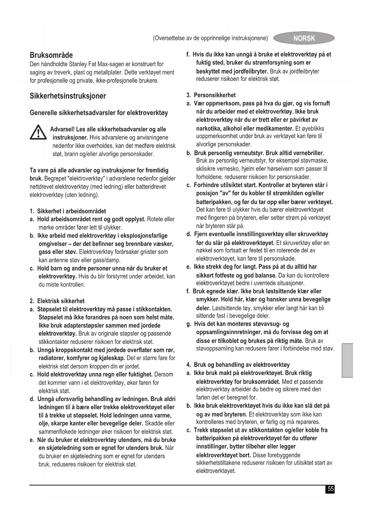 Last ned instruksjonene for din Sag i PDF-format gratis! Finn veiledningen din FME365 - STANLEY og ta den elektroniske enheten tilbake i hendene. På denne siden er alle dokumenter som er nødvendige for bruken av enheten din publisert. FME365 av merket STANLEY.
