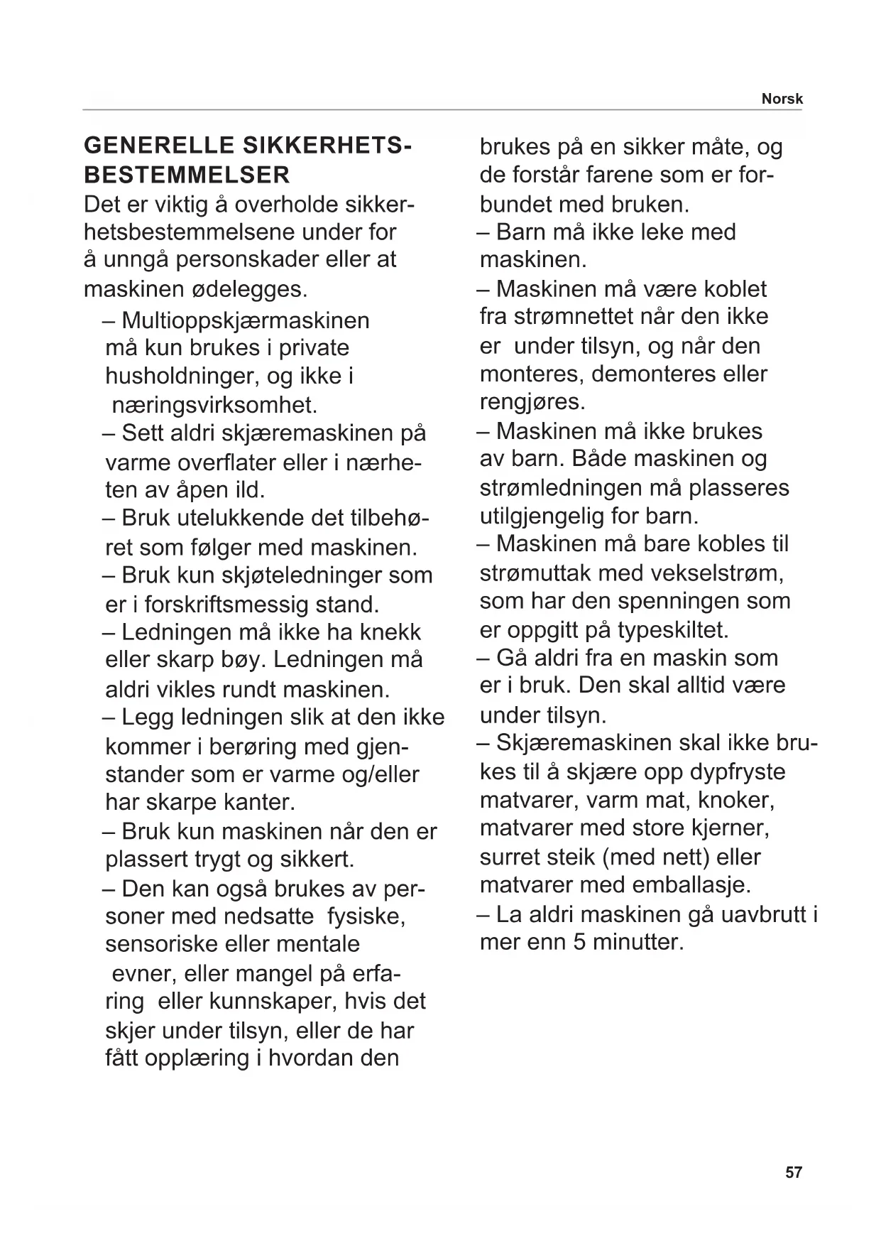 Forberedelse Ta maskinen forsiktig ut av emballasjen. Ta av alle embal- lasjedeler og oppbevar disse sammen med emballasjen. Multioppskjærmaskinen må rengjøres før den tas i bruk (se RENGJØRING). Sette opp multioppskjærmaskinen