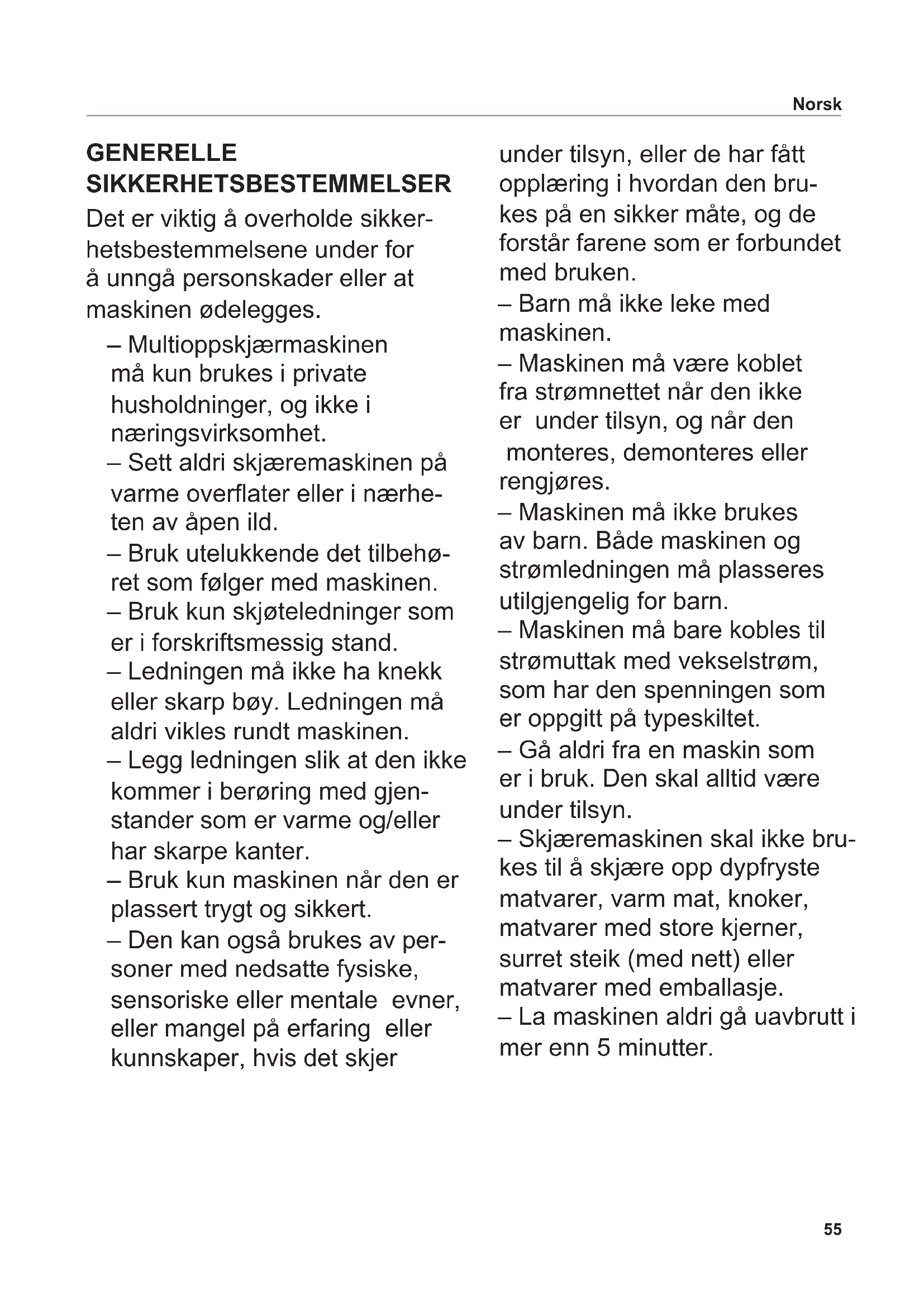 - Monter rundhjulet på nytt. Norsk58 VEDLIKEHOLD Universalskjæremaskinen er vedlikeholdsfri. Vi anbefaler imidlertid å ettersmøre sporet på skyvebrettet med ritter service- smøring eller vaselin med jevne mellomrom, slik at det beholder bevegeligheten. OPPBEVARING Oppbevar maskinen utilgjengelig for barn. Ledningen skal alltid ligge i det integrerte ledningsrommet (10). AVHENDING AV KASSERTE ELEKTRISKE OG ELEKTRONISKE APPARATER Dette symbolet betyr at dette produktet ikke skal kastes sammen med usortert husholdningsav- fall. Det nnes et separat (gratis) system for innsamling og mottak av kasserte elektriske og elektroniske apparater. Kontakt kommuneadministrasjonen eller forretningen hvor du kjøpte produktet, hvis du ønsker mer informasjon. Når du sørger for at dette produktet blir avhendet i samsvar med regelverket, bidrar du til å hindre eventuelle negative påvirkninger på miljø og helse, og til å bevare våre naturlige ressurser.