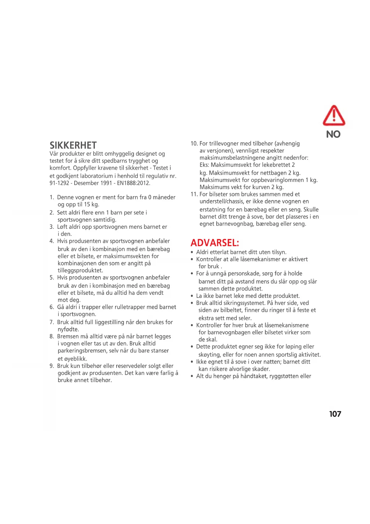 SIKKERHET Vår produkter er blitt omhyggelig designet og testet for å sikre ditt spedbarns trygghet og komfort. Oppfyller kravene til sikkerhet - Testet i et godkjent laboratorium i henhold til regulativ nr. 91-1292 - Desember 1991 - EN1888:2012.