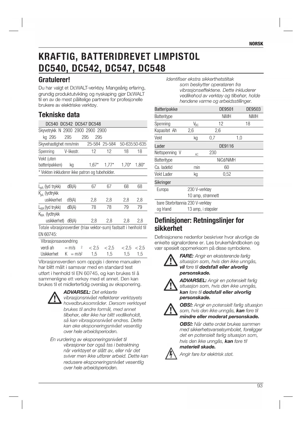 Finn enhetens veiledning gratis DC548 DEWALT i PDF-format.
