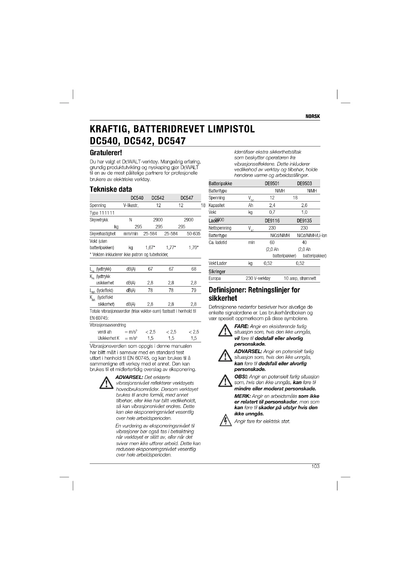 Last ned instruksjonene for din Lim pistol i PDF-format gratis! Finn veiledningen din DC540 - DEWALT og ta den elektroniske enheten tilbake i hendene. På denne siden er alle dokumenter som er nødvendige for bruken av enheten din publisert. DC540 av merket DEWALT.