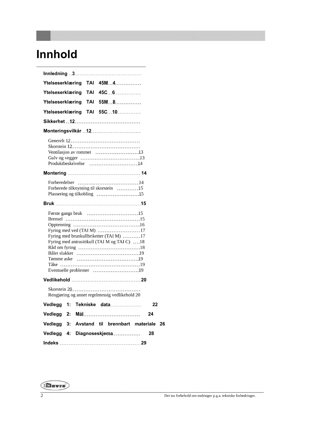 TAI 45M - Oppvarming DOVRE - Gratis bruksanvisning og manual
