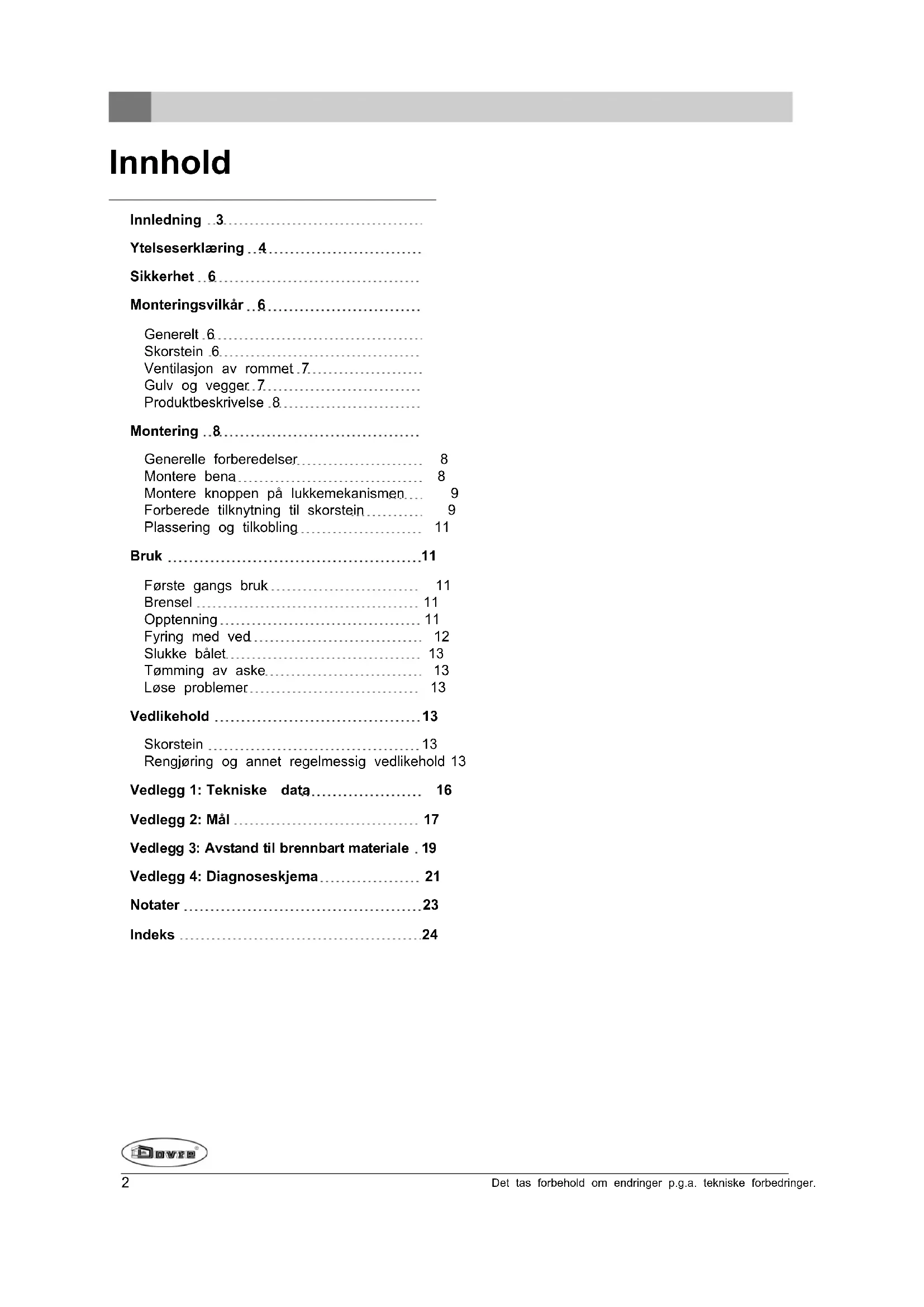 I denne anvisningen leser du hvordan du monterer, bruker og vedlikeholder ditt DOVRE ildsted. Hvis du ønsker mer informasjon eller tekniske data eller hvis det oppstår problemer under monteringen, bør du først ta kontakt med forhandleren.