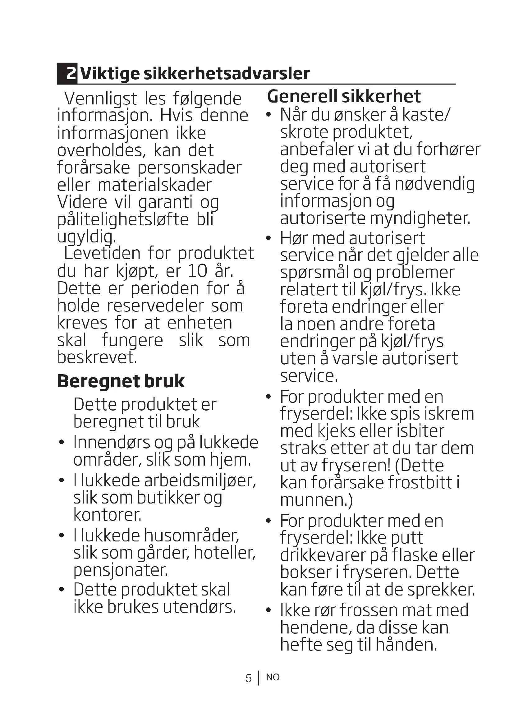 - 1 Kjøl/frys 4 2 Viktige sikkerhetsadvarsler 5 Beregnet bruk p. 5