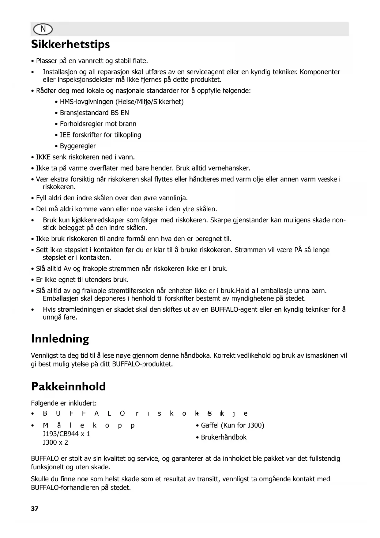 Vennligst ta deg tid til Å lese nøye gjennom dette händboka. Korrekt vedlikehold og bruk av ismaskinen vil gi best mulig ytelse på ditt BUFFALO-produktet.
