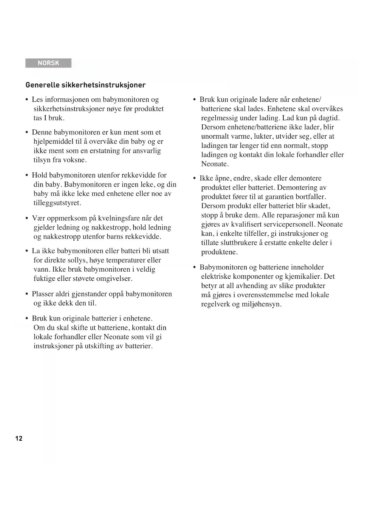 - Les informasjonen om babymonitoren og sikkerhetsinstruksjoner nøye før produktet tas I bruk.
