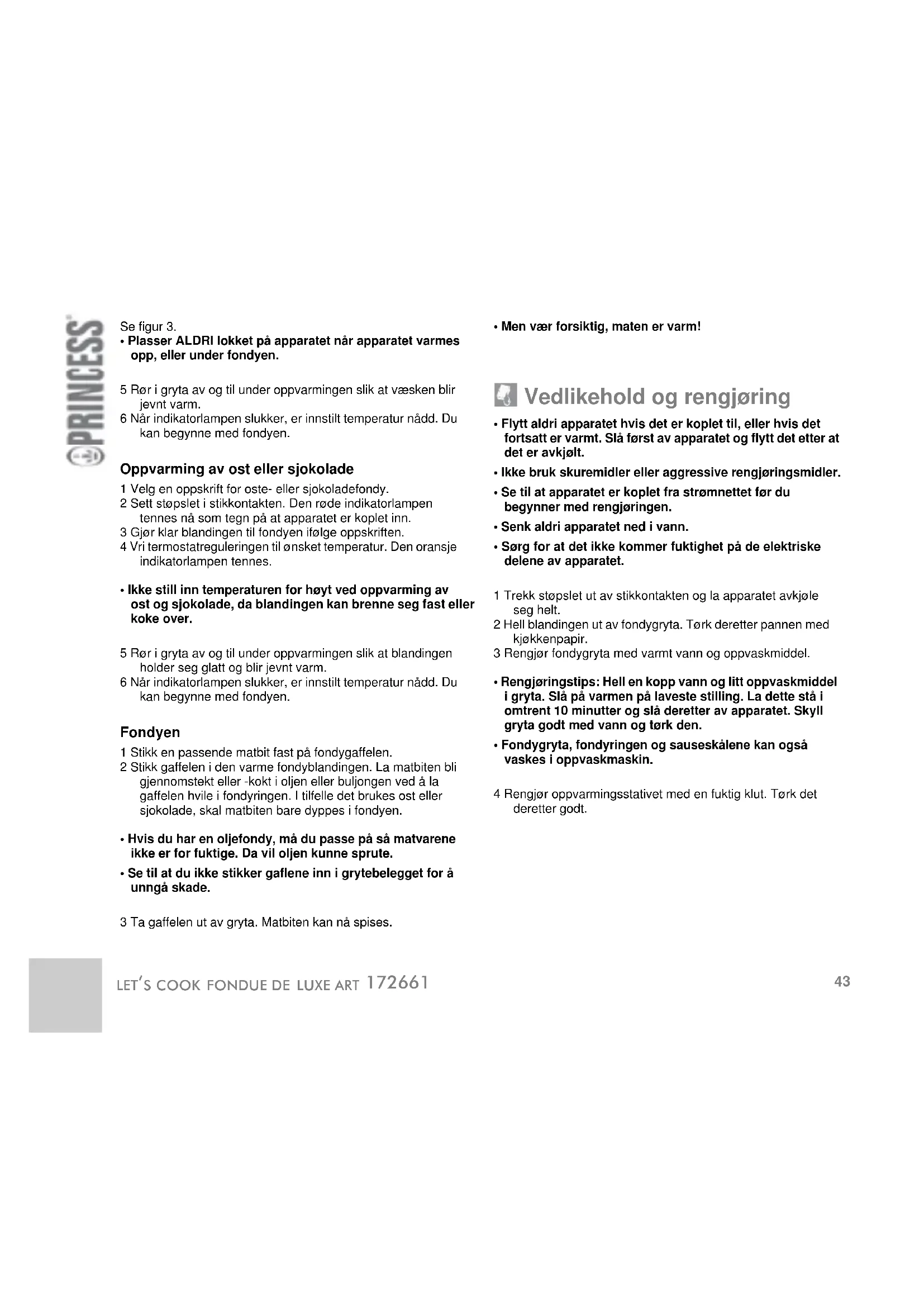 - Men vær forsiktig, maten er varm! Vedlikehold og rengjøring