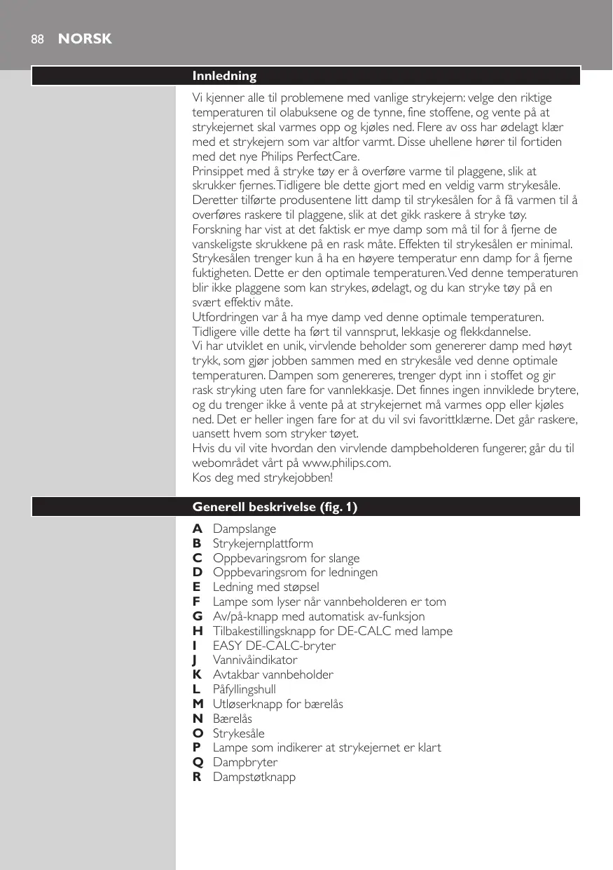 Téléchargez la notice de votre Dampstrykejern au format PDF gratuitement ! Retrouvez votre notice GC-9240 - PHILIPS et reprennez votre appareil électronique en main. Sur cette page sont publiés tous les documents nécessaires à l'utilisation de votre appareil GC-9240 de la marque PHILIPS.