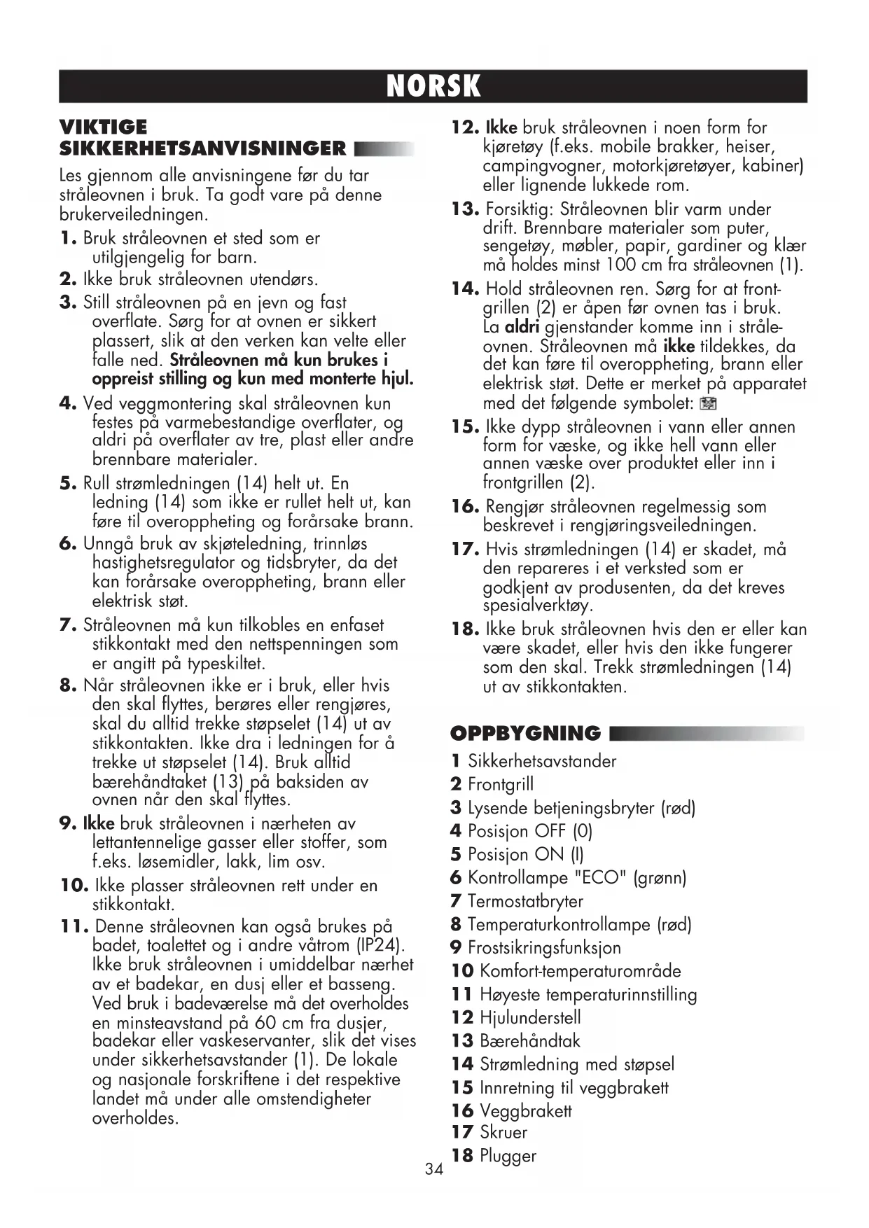 13. Forsiktig: Stråleovnen blir varm under