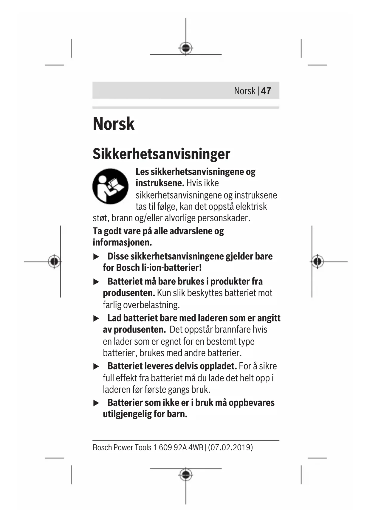 Finn enhetens veiledning gratis GBA 12V BOSCH i PDF-format.