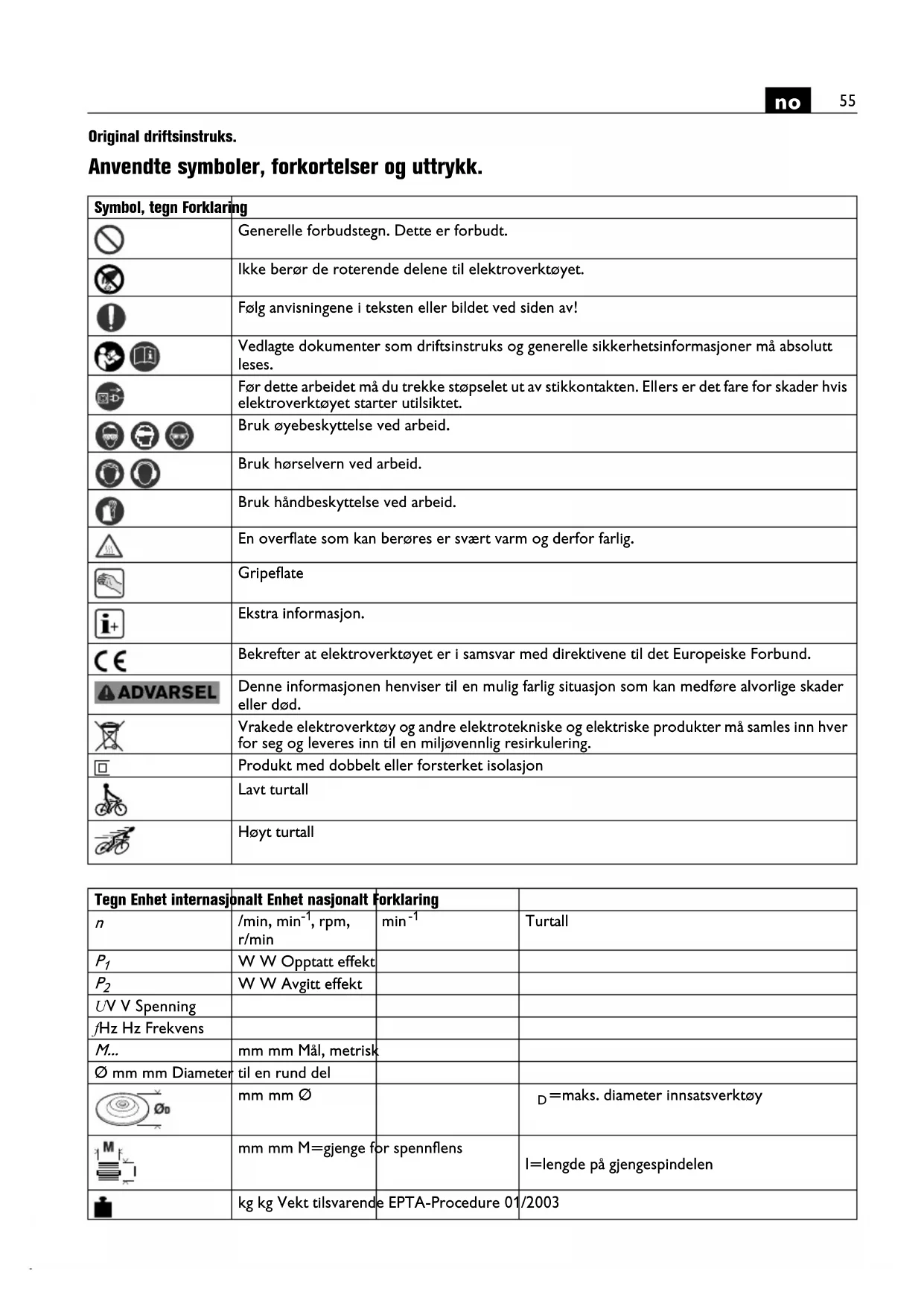 Ikke bruk dette elektroverktoyet for du har lest og forstatt denne driftsinstruksen og de vedlagte