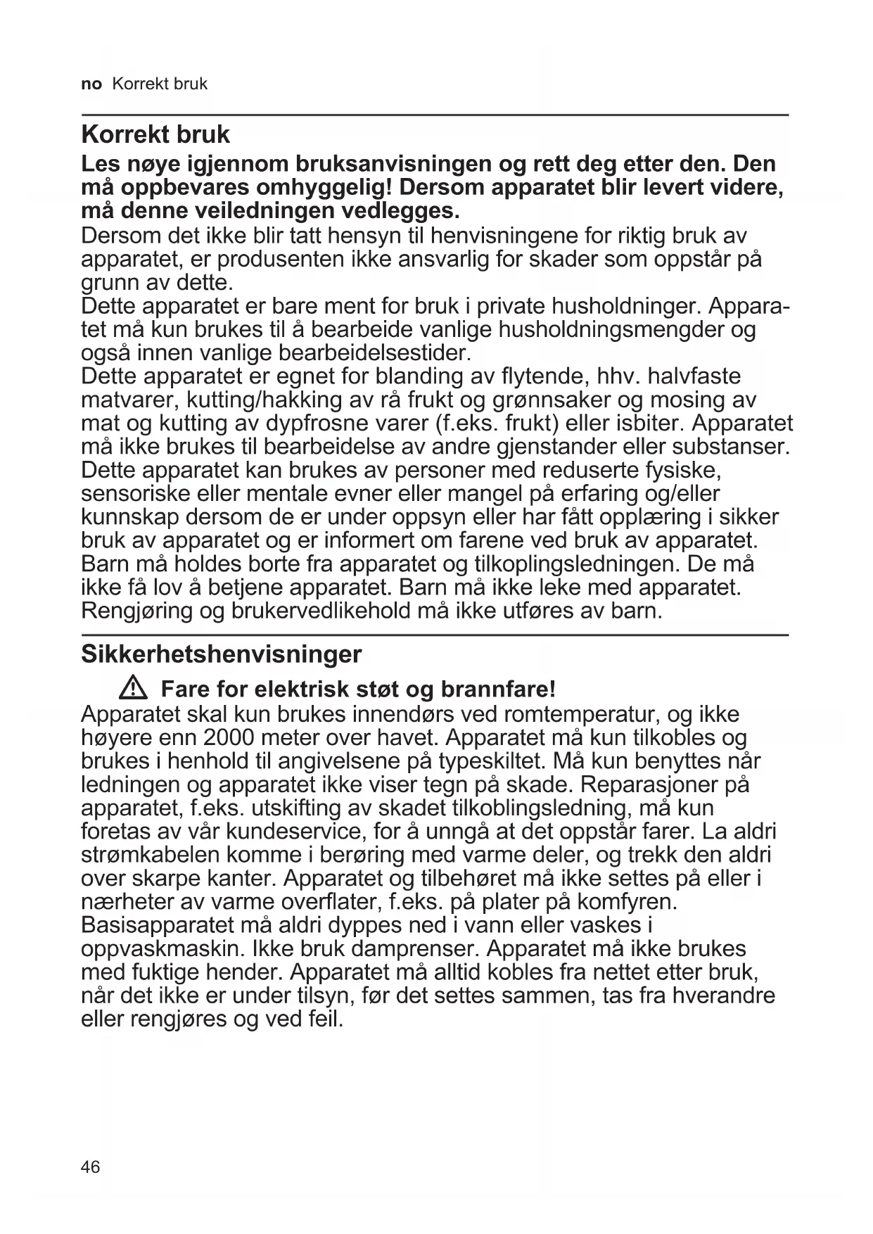 - Sikkerhetshenvisninger p. 46