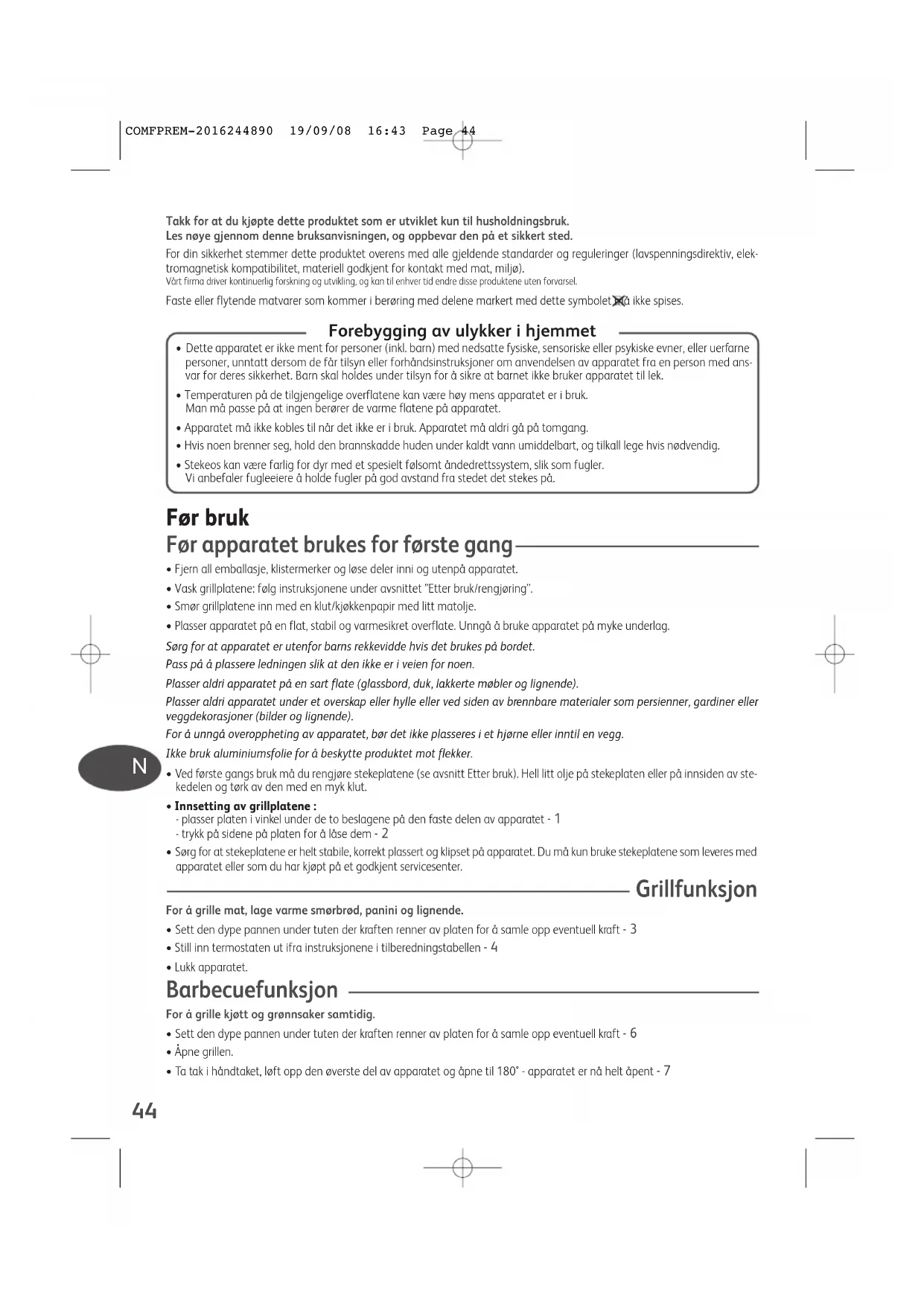 COMFPREM-2016244890 19/09/08 16:43 Page 4344 Før bruk Før apparatet brukes for første gang