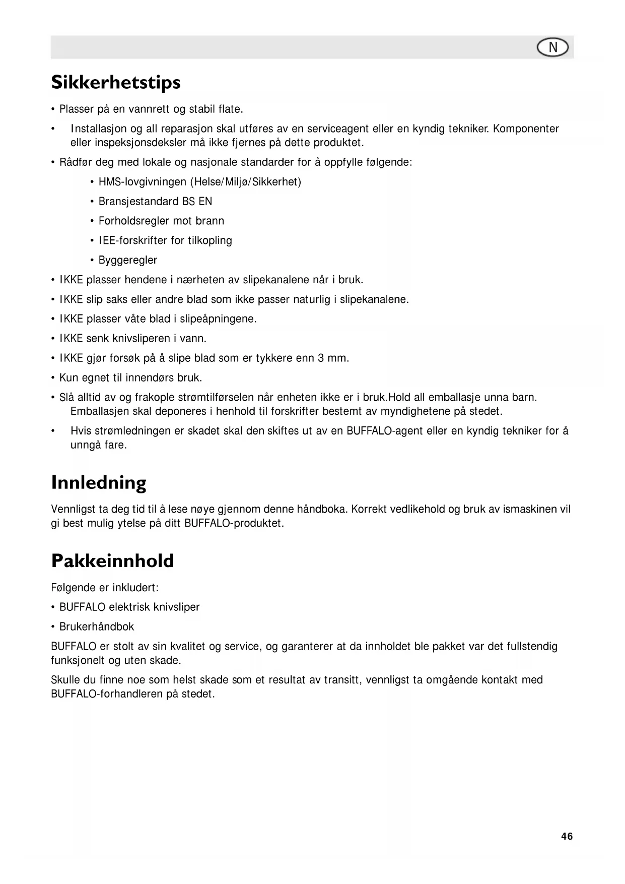 Vennligst ta deg tid til Å lese nøye gjennom davon handboka. Korrekt vedlikehold og bruk av ismaskinen vil gi best mulig ytelse på ditt BUFFALO-produktet.