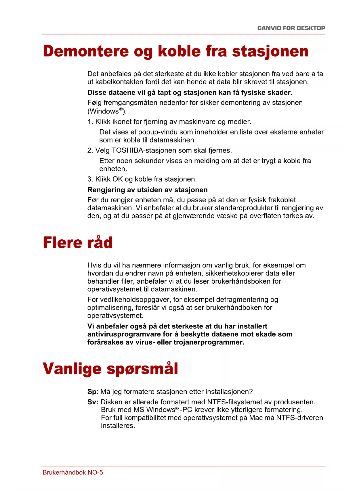Ofte stilte spørsmål - Canvio for Desktop TOSHIBA