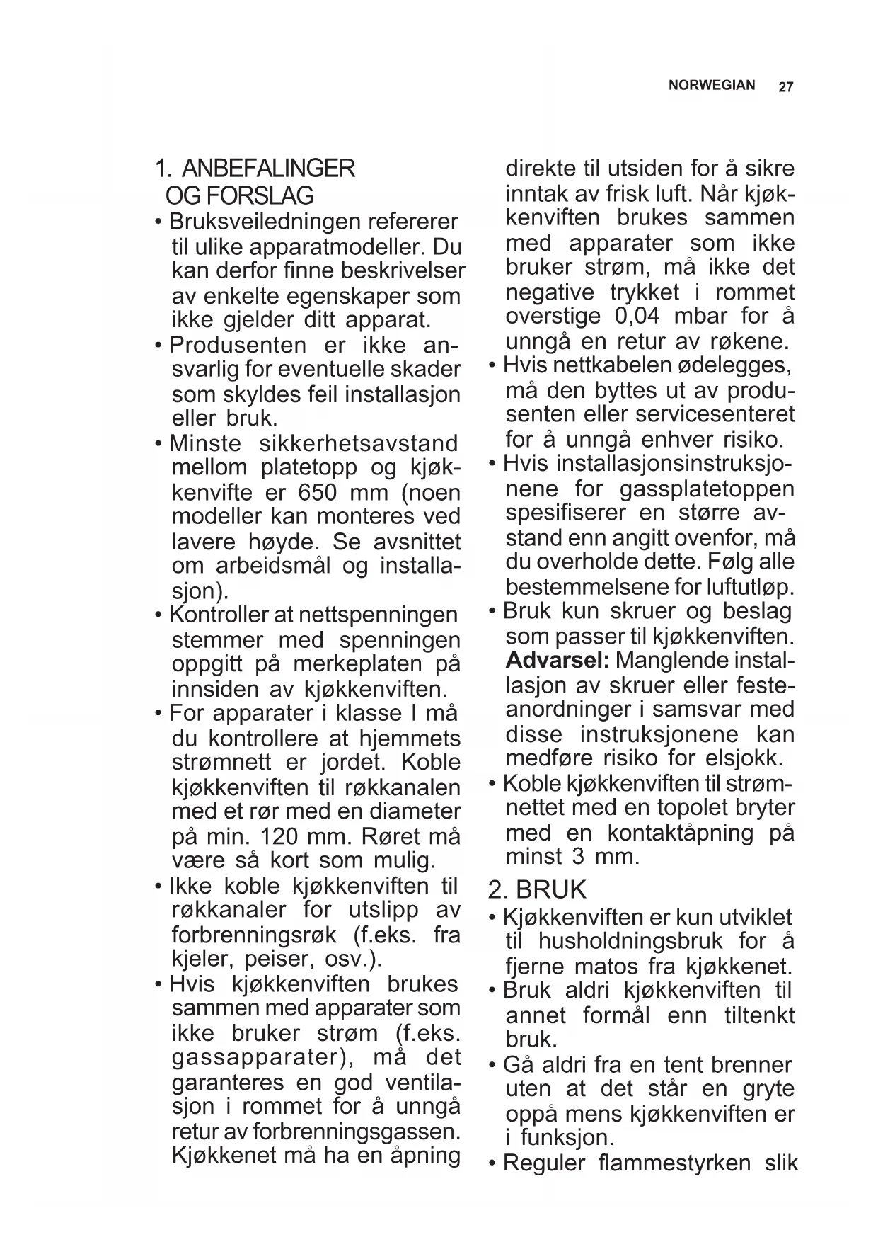 - Bruk aldri kjøkkenviften til annet formål enn tiltenkt bruk.