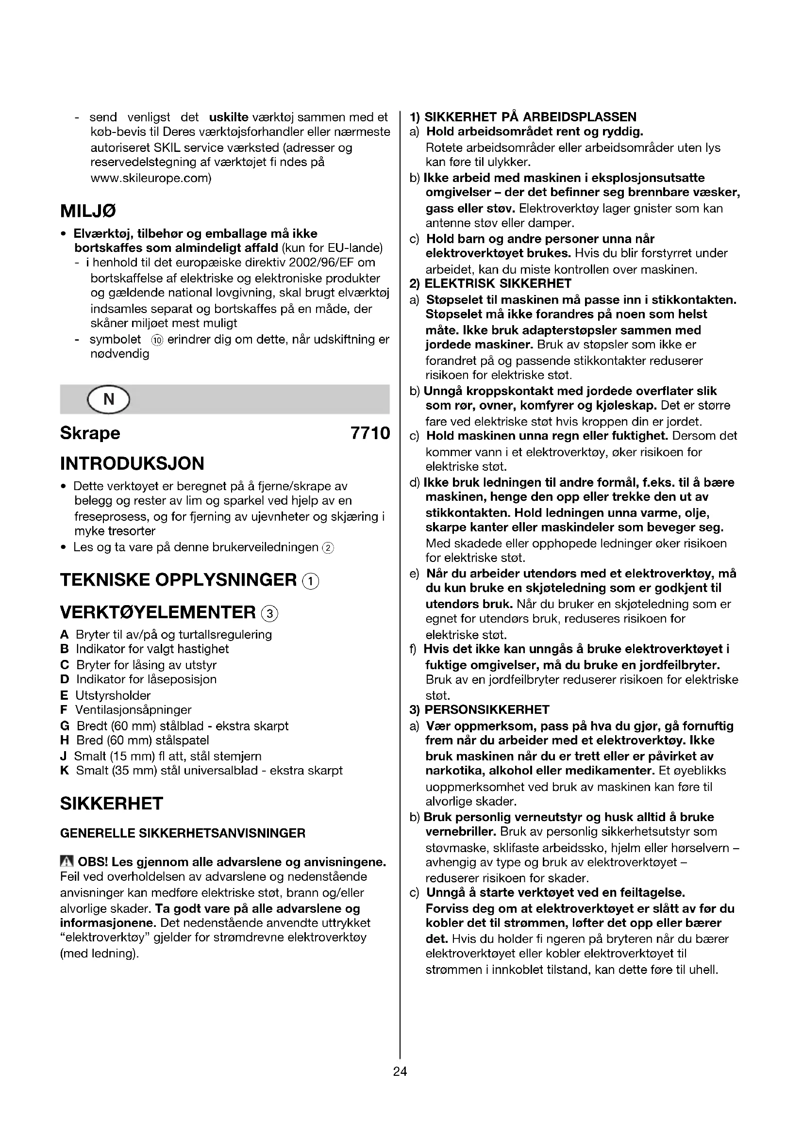SIKKERHETSANVISNINGER FOR SKRAPER