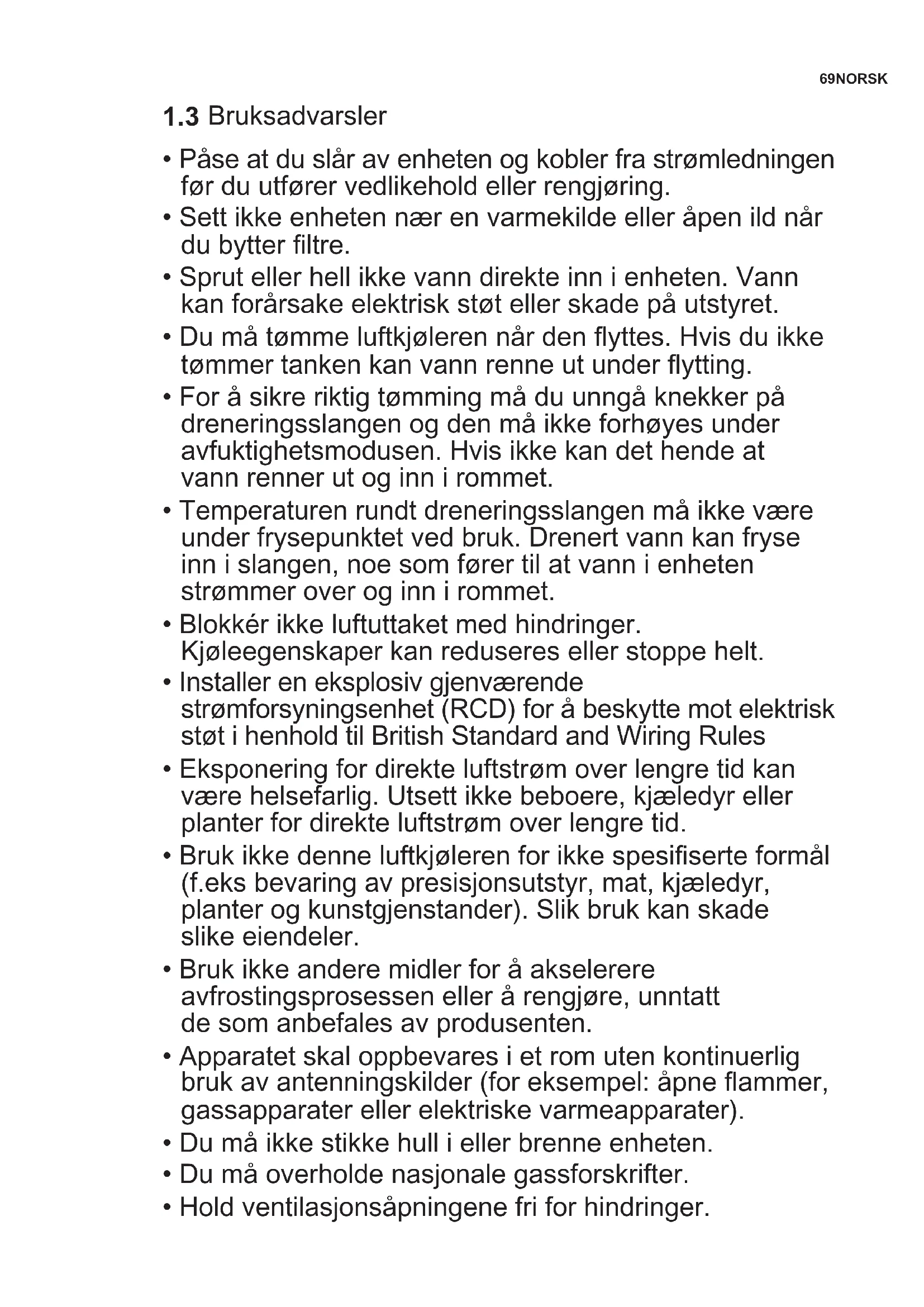 - Luftkjøleren er ikke beregnet for bruk av småbarn eller svekkede personer uten tilsyn.67NORSK