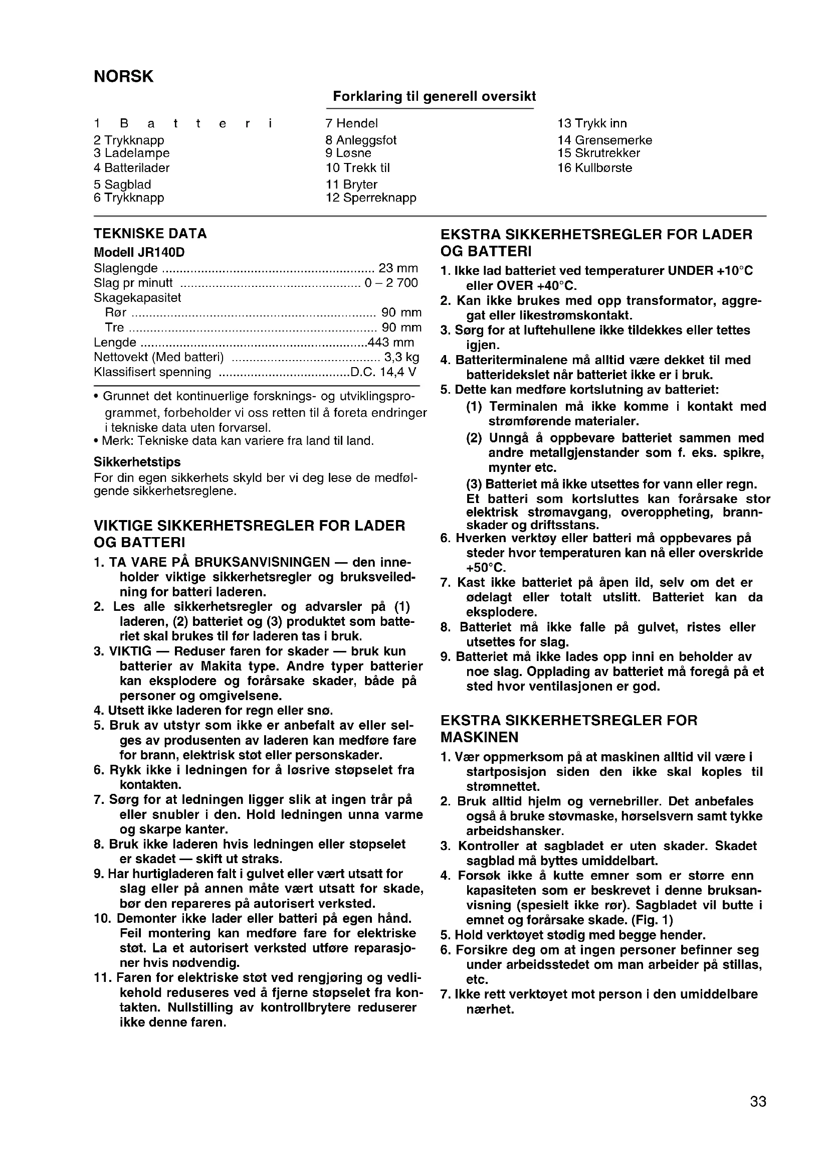 Finn enhetens veiledning gratis JR140D MAKITA i PDF-format.