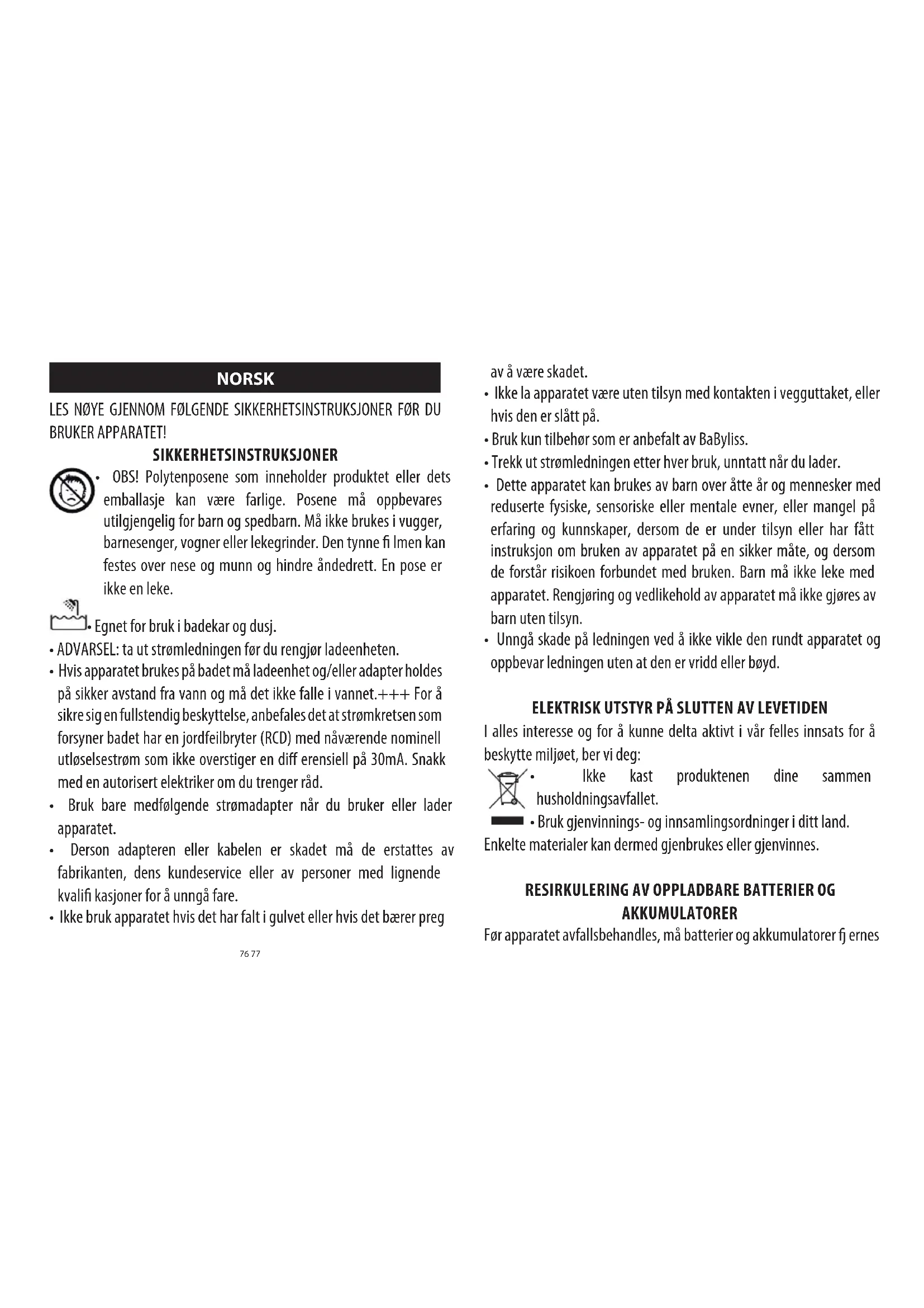 - Bruk kun tilbehør som er anbefalt av BaByliss.