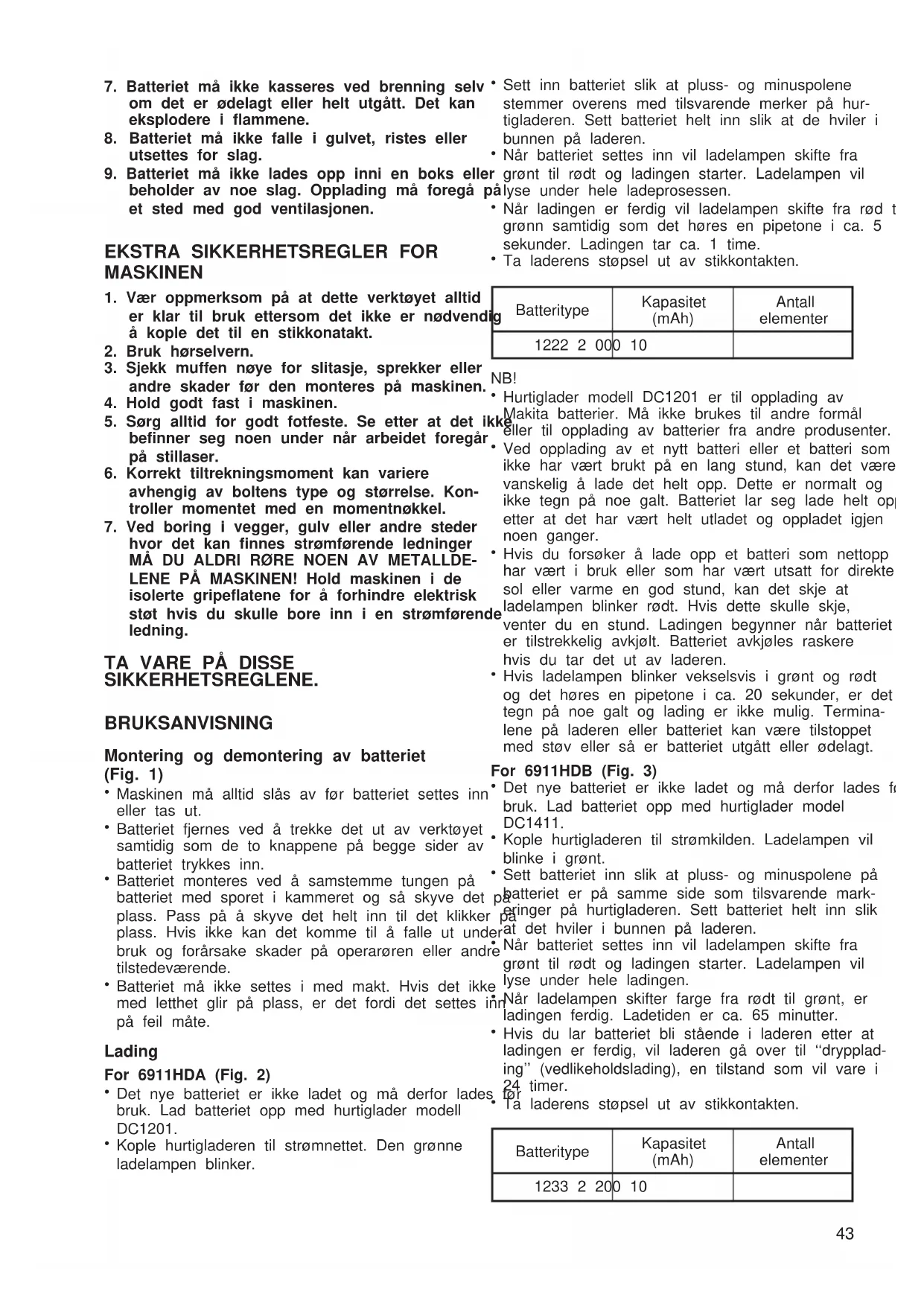 Hurtiglader modell DC1201 er til opplading av Makita batterier. Må ikke brukes til andre formål eller til opplading av batterier fra andre produsenter.