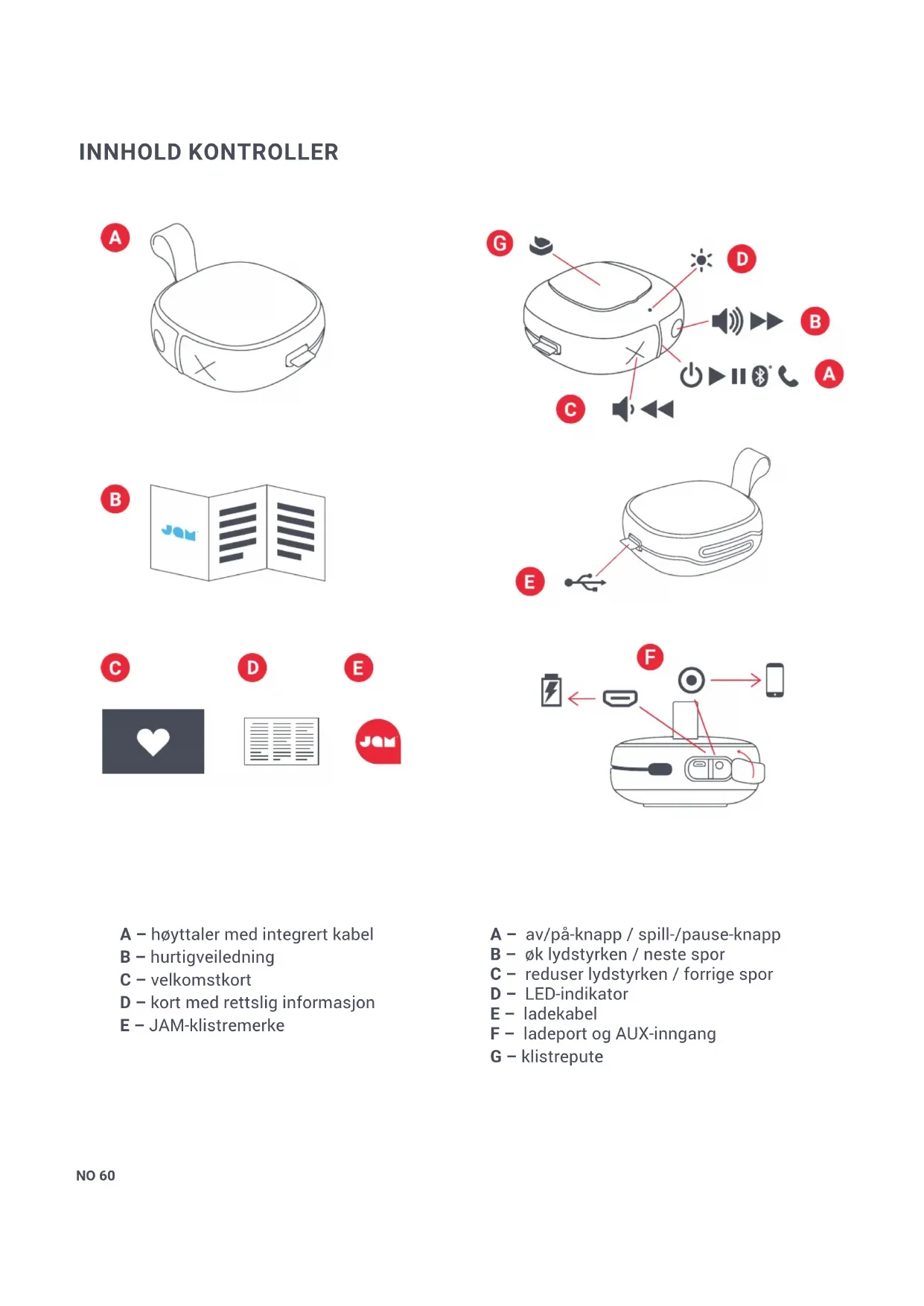 - Jam er ikke erstatningsansvarlig for eventuell skade som måtte oppstå på smarttelefoner, iPod/MP3-spillere eller noen andre enheter.