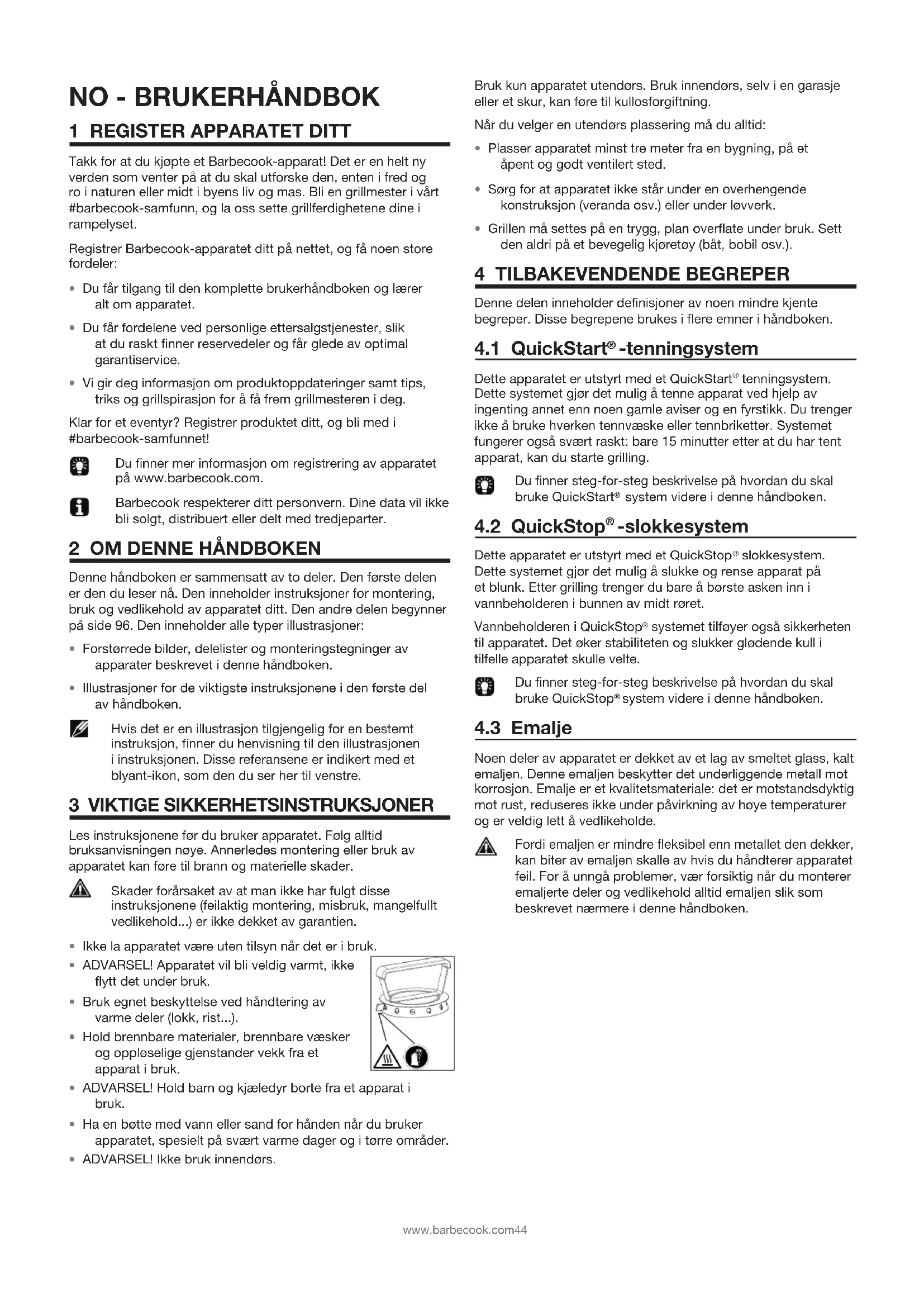 - Vi gir deg informasjon om produktoppdateringer samt tips, triks og grillspirasjon for å få frem grillmesteren i deg. Klar for et eventyr? Registrer produktet ditt, og bli med i #barbecook-samfunnet! Du finner mer informasjon om registrering av apparatet på www.barbecook.com. Barbecook respekterer ditt personvern. Dine data vil ikke bli solgt, distribuert eller delt med tredjeparter.
