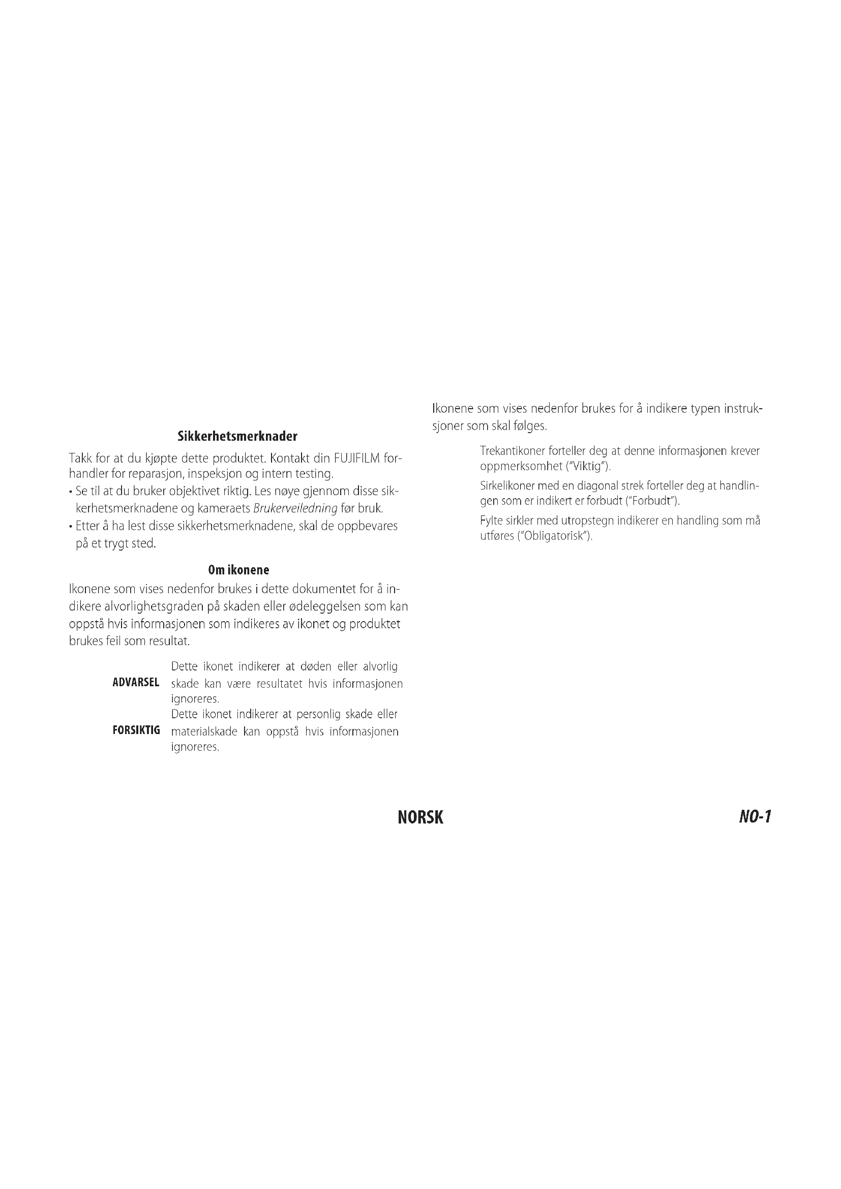 Ikonene som vises nedenfor brukes i dette dokumentet for a indikere alvorlighetsgraden pa skaden ell er deleggelsen som kan oppsta hvis informasjonen som indikeres av ikonet ogproduktet brukes feil som resultat.