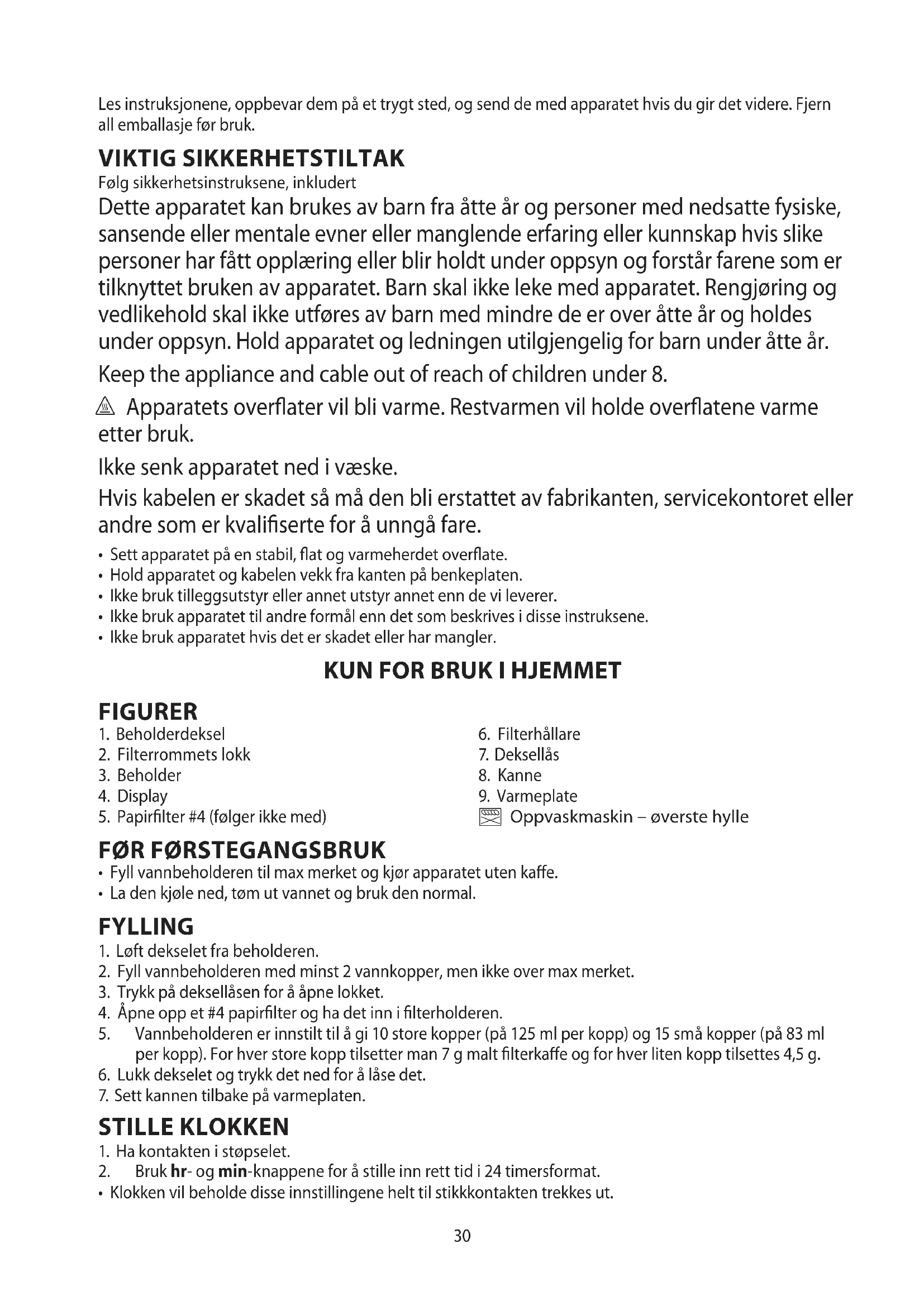 - Klokken vil beholde disse innstillingene helt til stikkkontakten trekkes ut.31 bruksanvisning (Norsk)