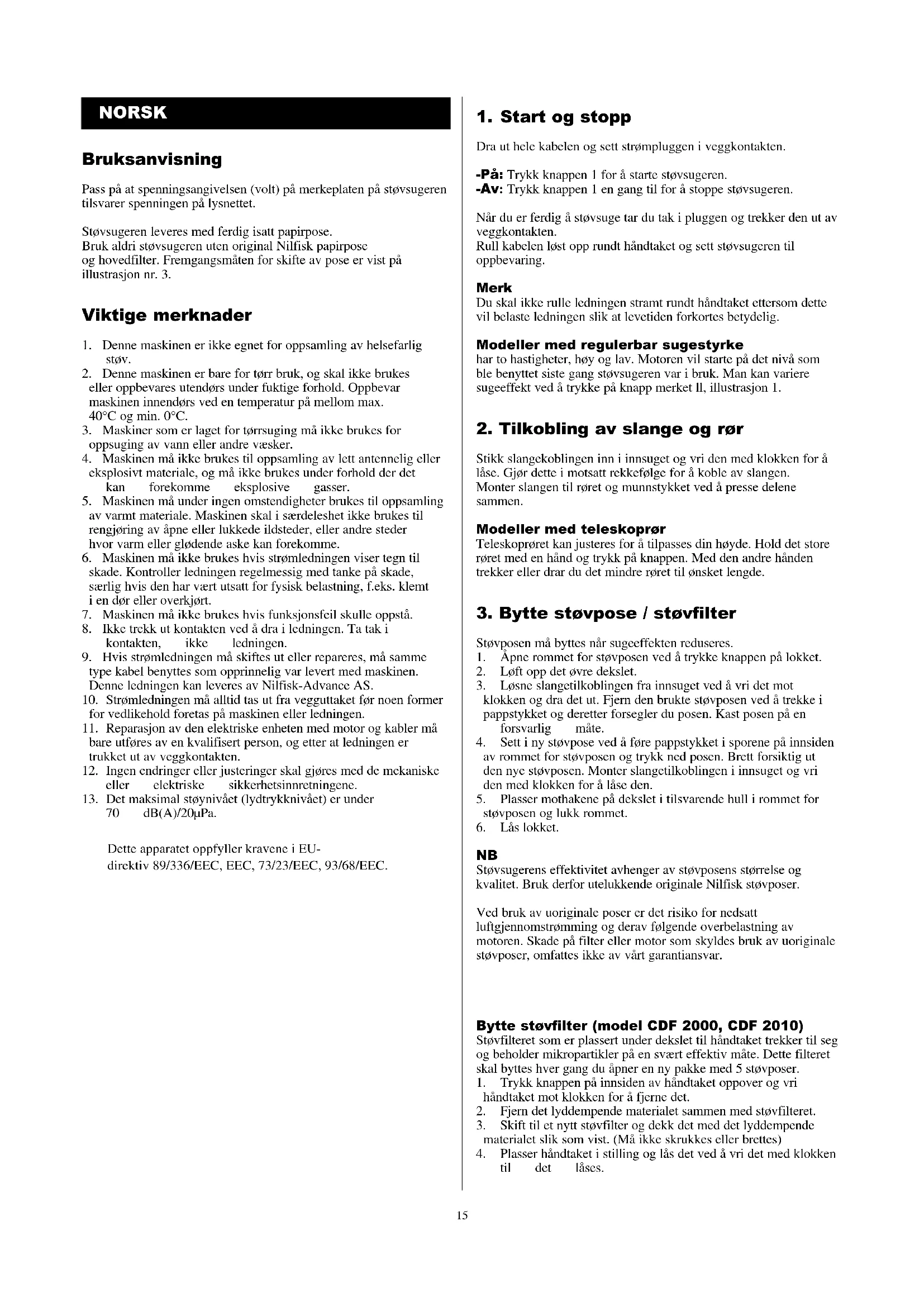 CDF 2000 - Støvsuger NILFISK - Gratis bruksanvisning og manual