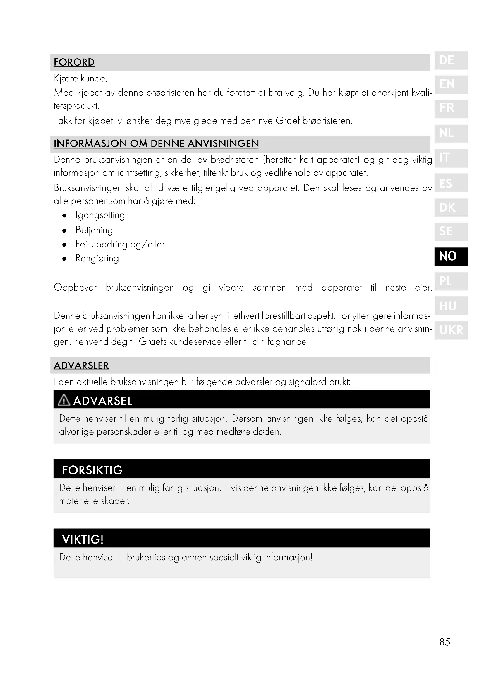 TO 91 - Brødrister GRAEF - Gratis bruksanvisning og manual