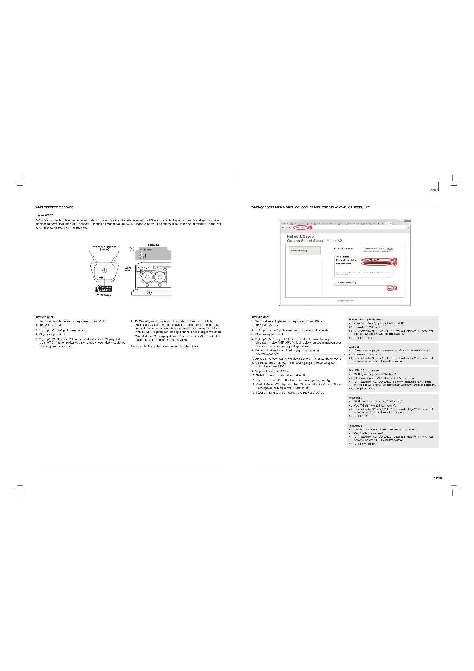 - Merk at Model XXL kun støtter WPS “trykknapp”-metoden. WPS “PIN”-metoden støttes ikke.