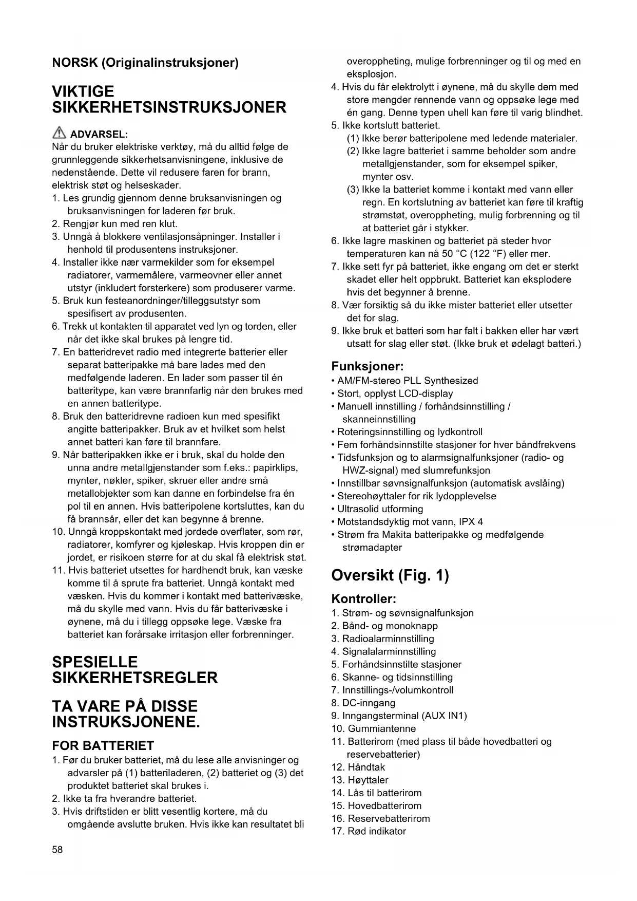 DMR107 - Radio MAKITA - Gratis bruksanvisning og manual