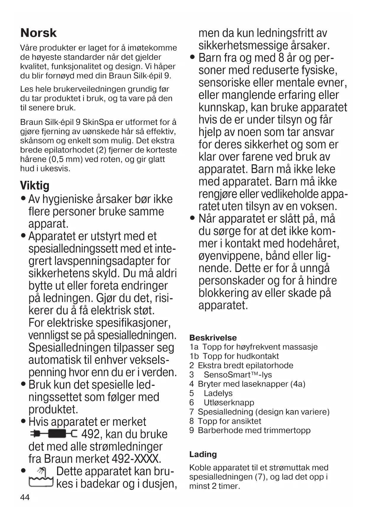Hvis apparatet er merket 492, kan du bruke det med alle strømledninger fra Braun merket 492-XXXX.