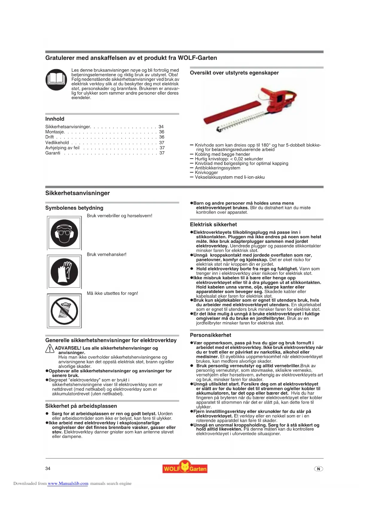 - Gratulerer med anskaffelsen av et produkt fra WOLF-Garten Innhold Sikkerhetsanvisninger p. 34