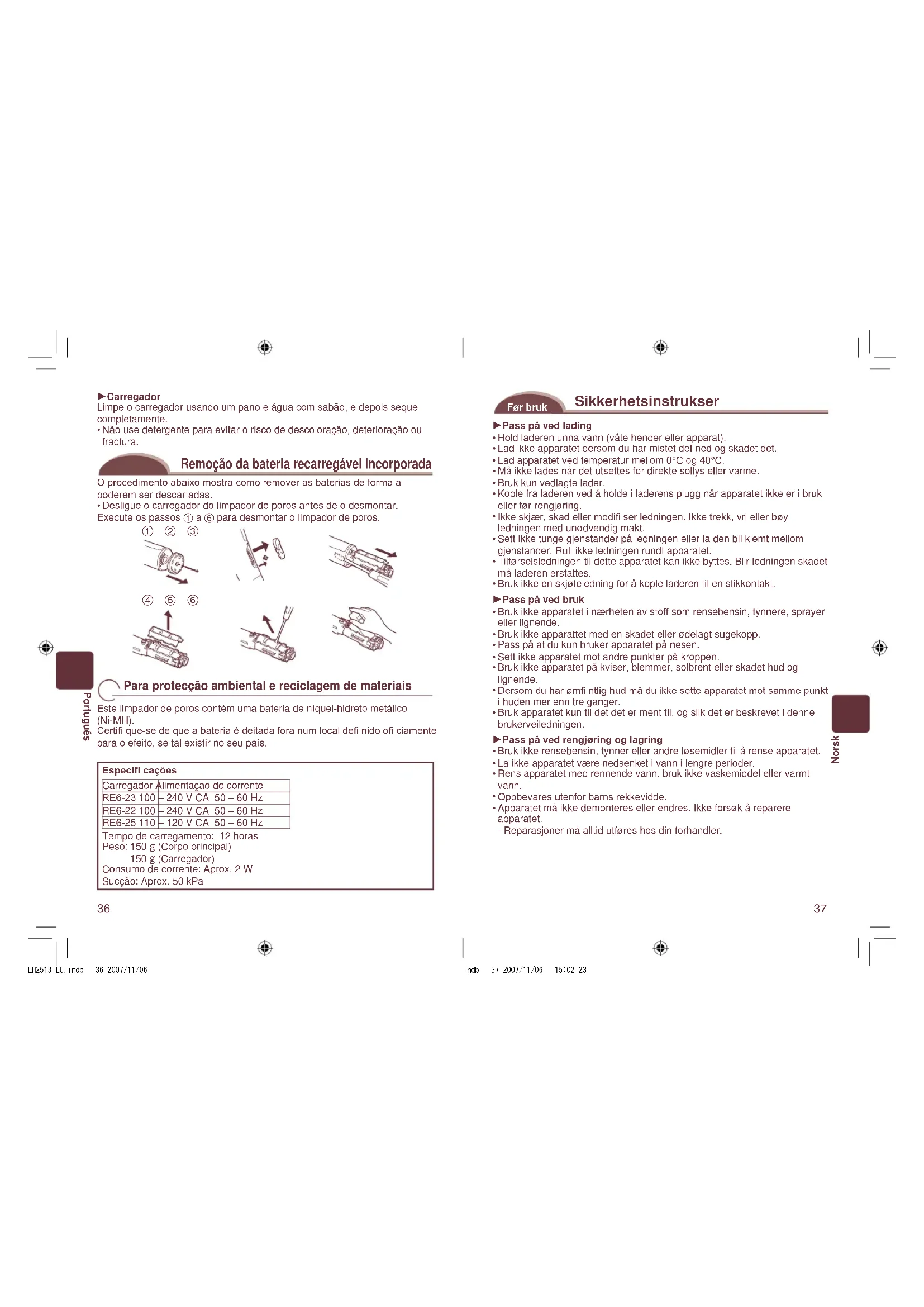 EH2513_EU.indb 39 2007/11/06 15:02:2440 Norsk Rense din porerenser Rengjøring Etter bruk av apparatet Apparatet kan vaskes med vann.