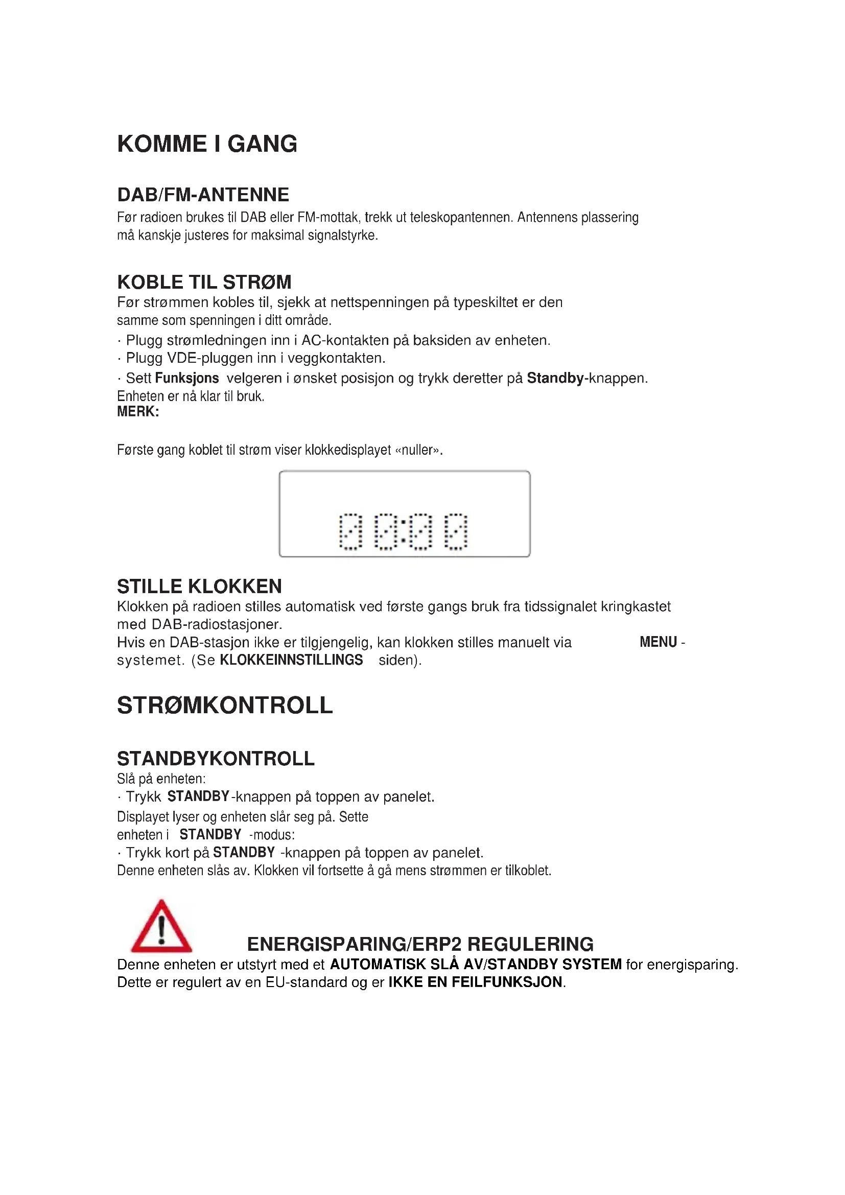 - Trykk TUNING/SELECT- knappen kort for å spille forhåndsinnstilt. FABRIKKOPPSETT: Dette alternativet gjenoppretter alle innstillinger til «factory original». Klokke, stasjonslister og lagrede forhåndsinnstilte stasjoner slettes. Etter fabrikkoppsett re- skanner radioen automatisk DAB-båndet.