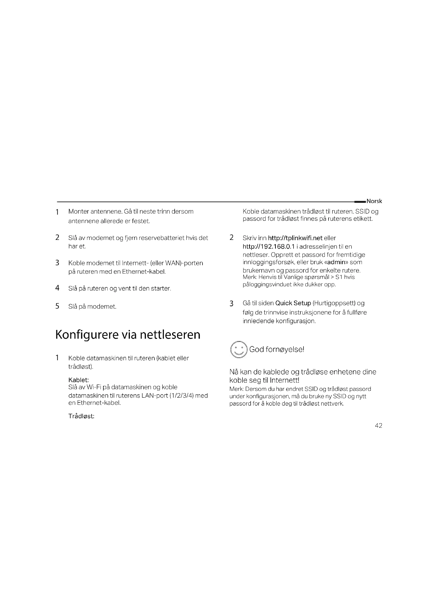 - Åpne en nettleser, skriv inn KWWSWSOLQNZLƮQHWeller http://192.168.0.1 og kjør hurtigoppsettet igjen.