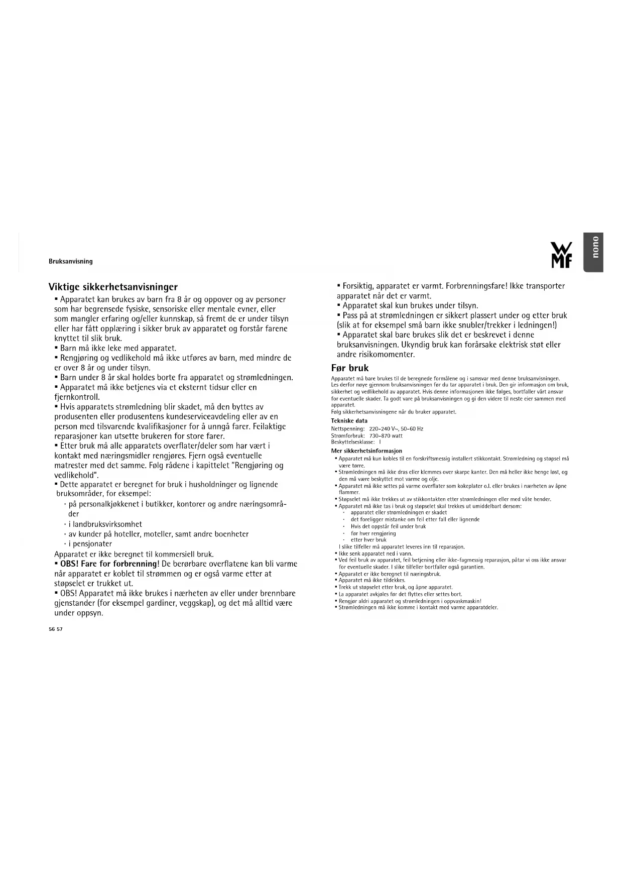 - Apparatet skal bare brukes med originalt tilbehør fra WMF.