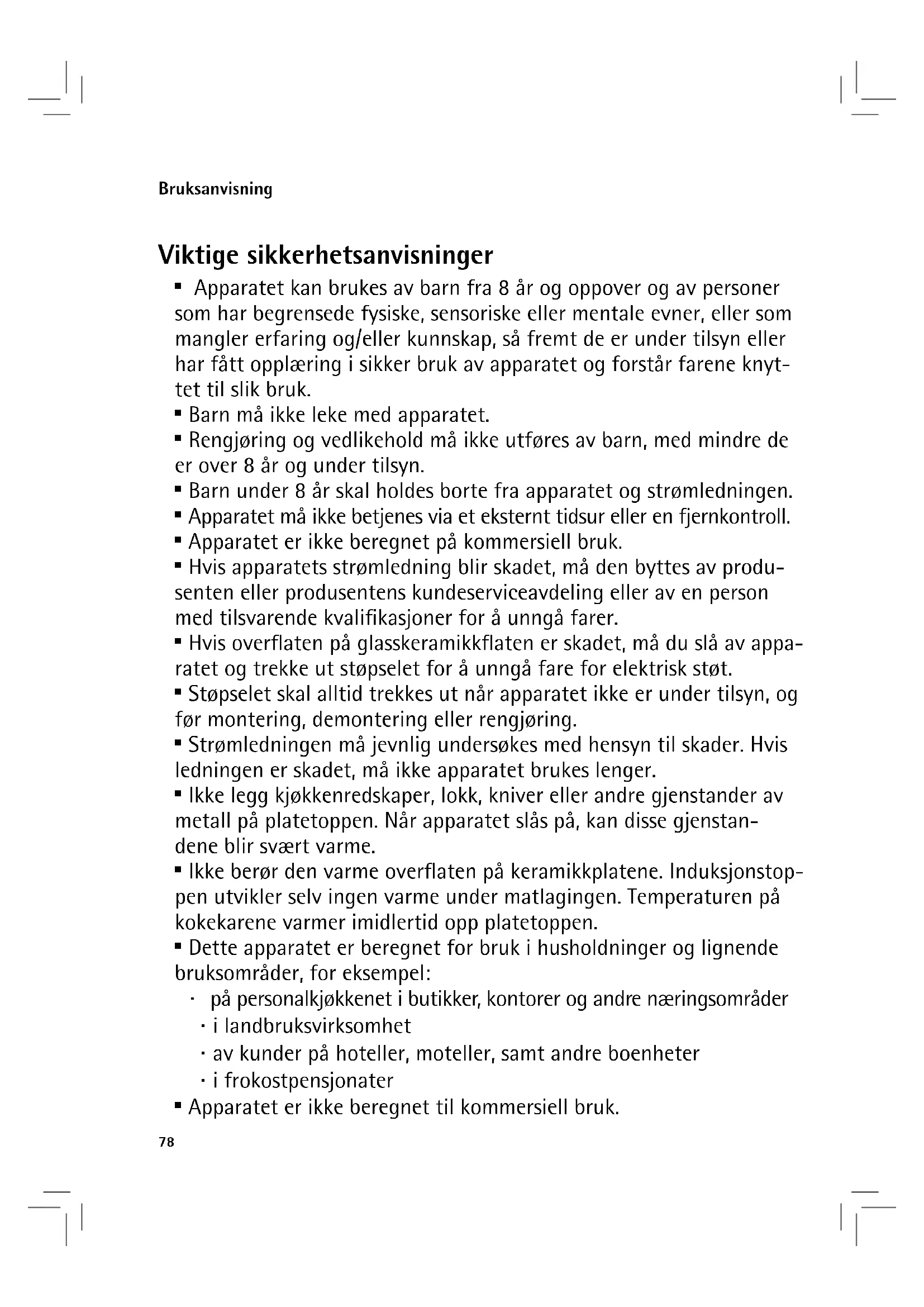 - Barn under 8 år skal holdes borte fra apparatet og strømledningen.