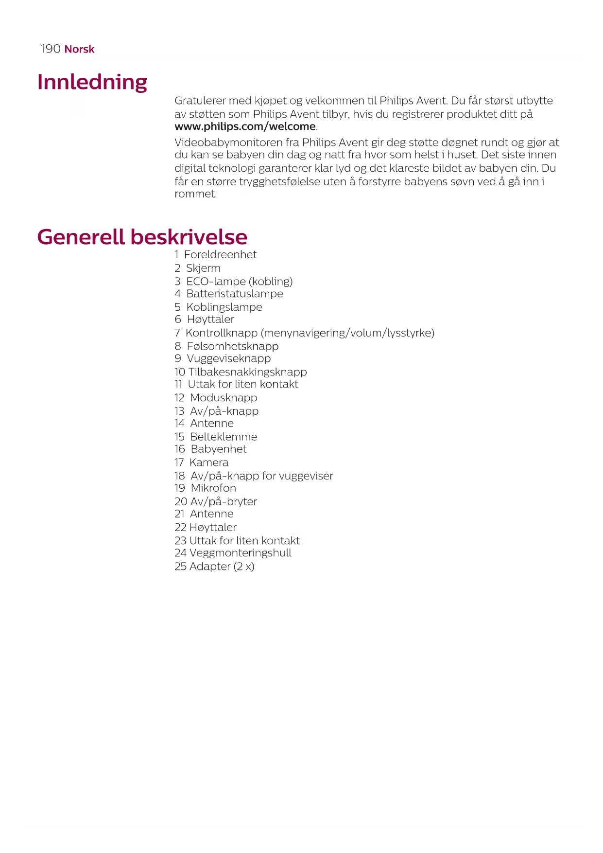 Vær oppmerksom på at du brukerijke babymonitoren på eget ansvar. Koninklijke Philips N.V. og tilhorende selskaper er ikke ansvarlig for funksjonen til ellerBruken av的各项babymonitoren, og patar seg derfor intet ansvar i forbindelse med dinBruk av��ne.