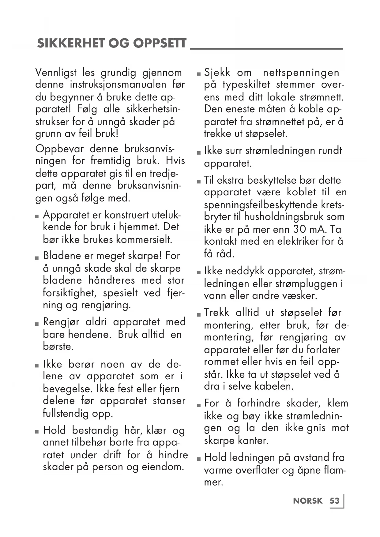 Vennligst les grundig gjennom denne instruksjonsmanualen før du begynner å bruke dette ap- paratet! Følg alle sikkerhetsin- strukser for å unngå skader på grunn av feil bruk! Oppbevar denne bruksanvis- ningen for fremtidig bruk. Hvis dette apparatet gis til en tredje- part, må denne bruksanvisnin- gen også følge med.